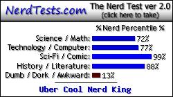 NerdTests.com says I'm an Uber Cool Nerd King. What are you? Click here!
