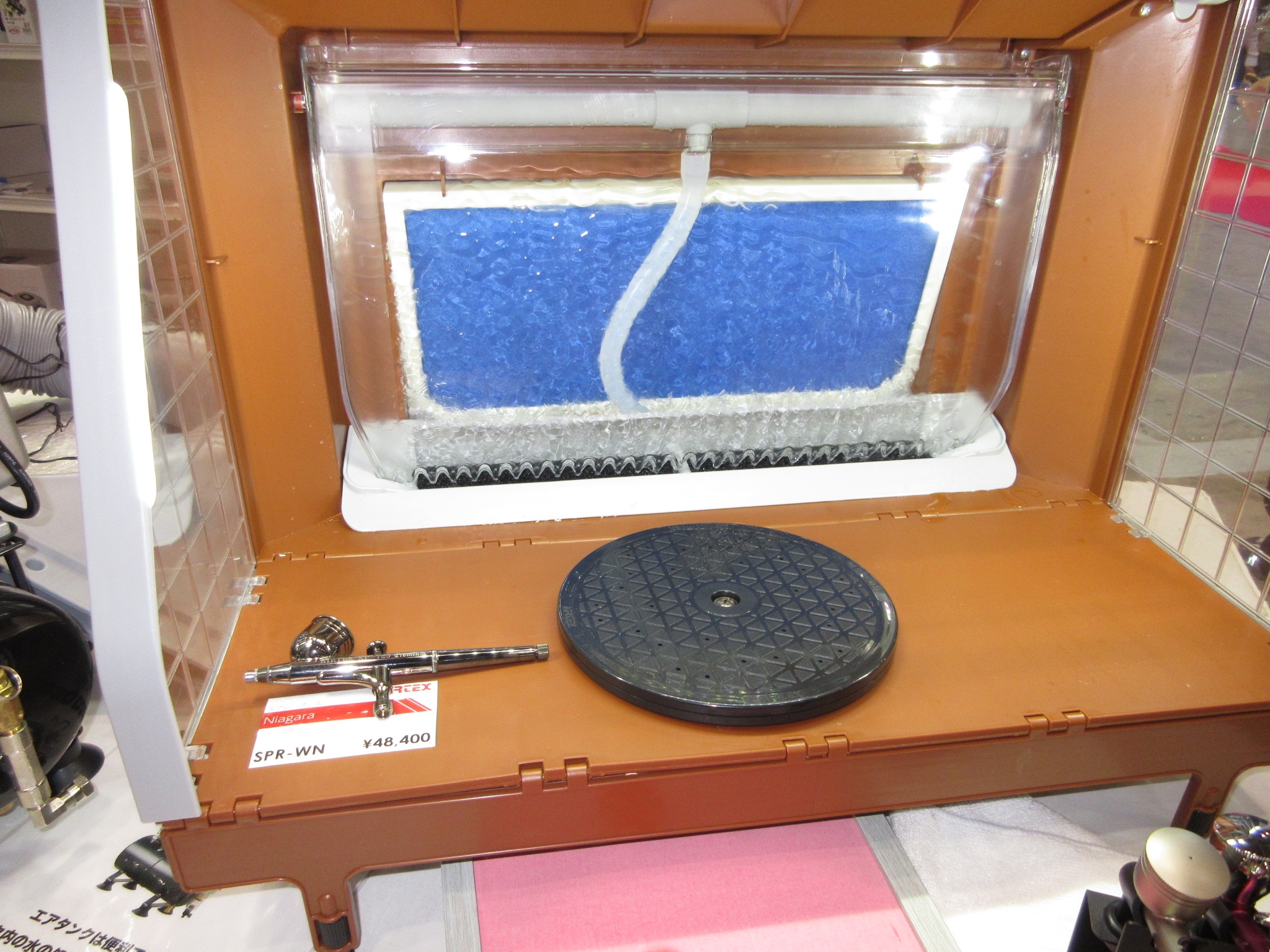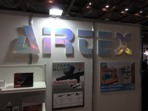 This Airtex extration booth uses a cascade of water instead of a standard filter. Neat. OK, next is Bandai, who did not allow video to be taken in their booth. Maybe because their booth gets too hectic?