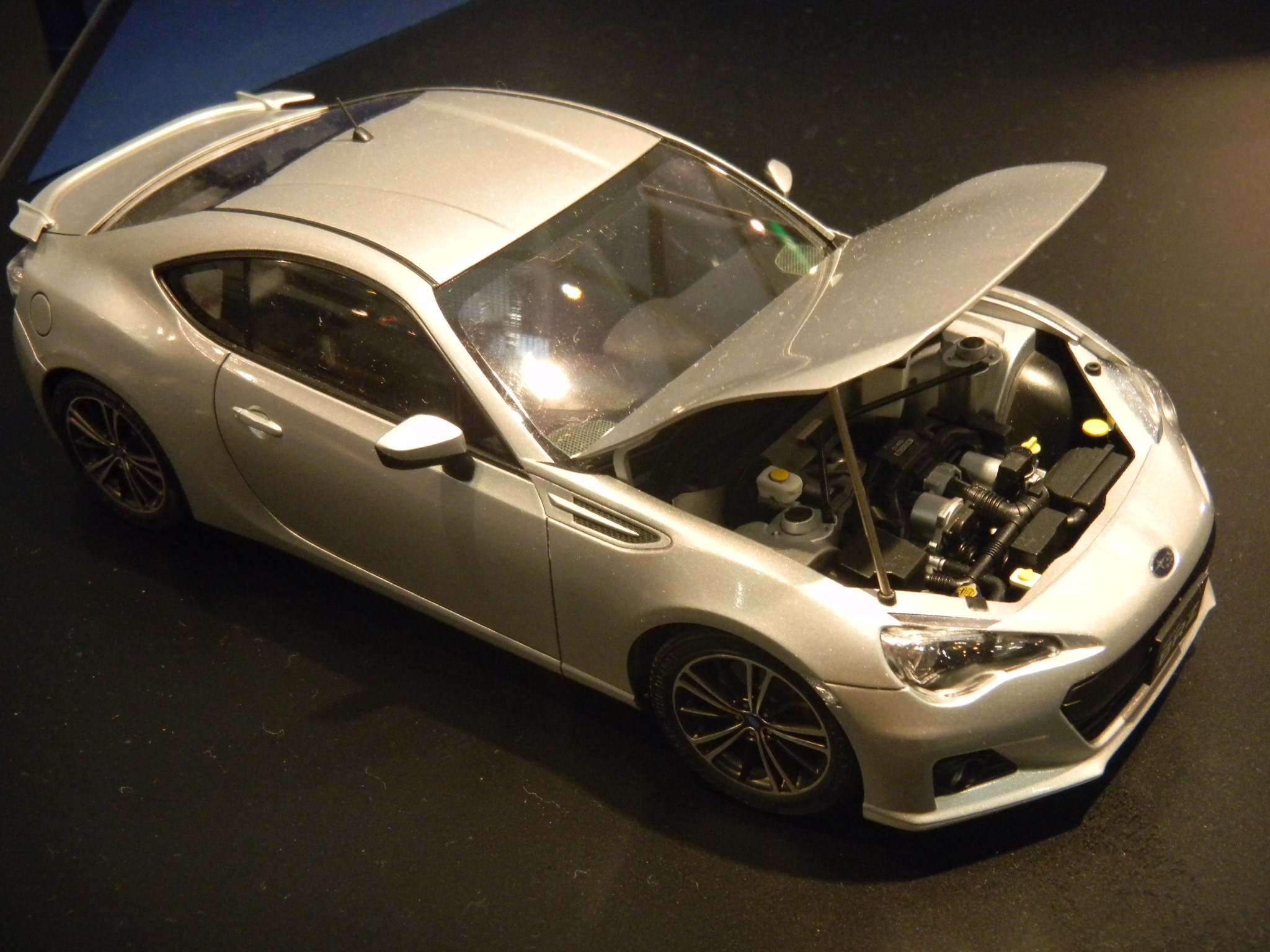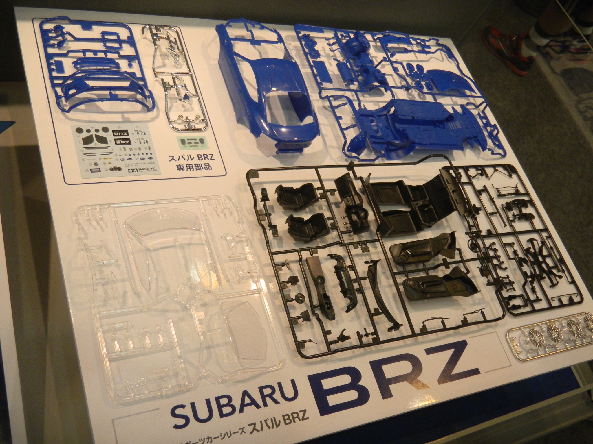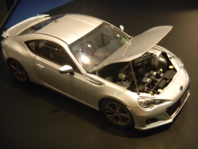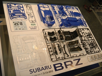 Left: The Tamiya bus, yay. Right: The Subaru BRZ car on display in Tamiya's display area.