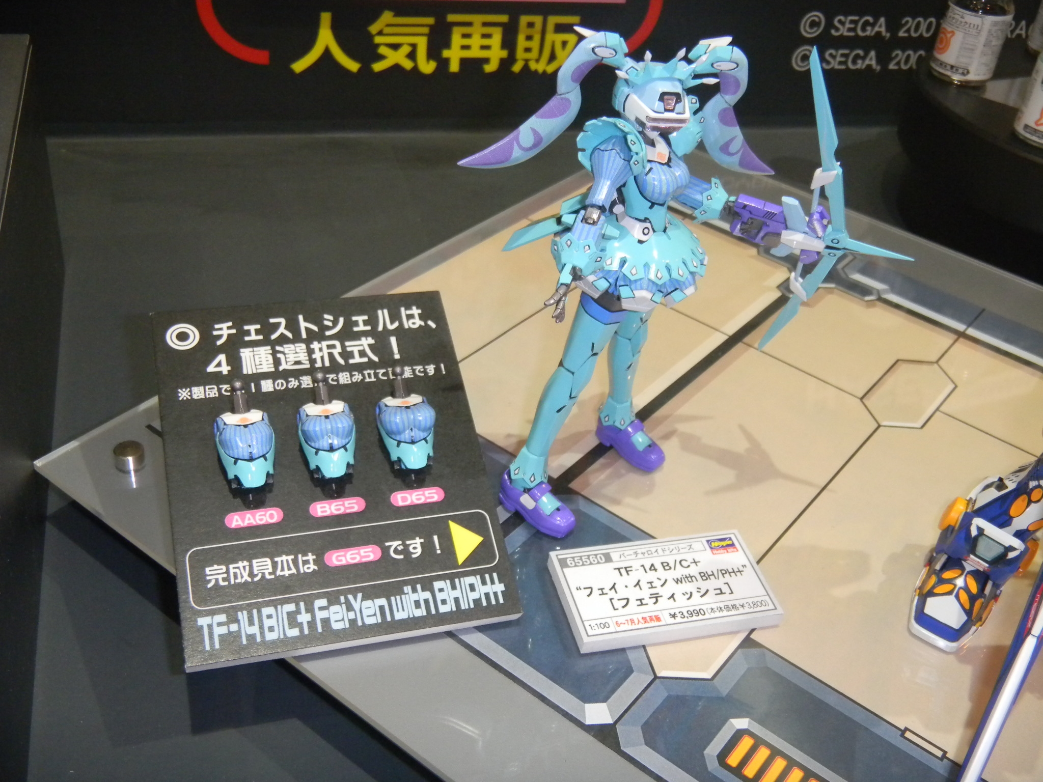 Virtual On kits! Kotobukiya used to release these, but now Hasegawa is now making them. Interestingly enough, different-sized robotic breasts are optional for the Fei Yin robot. Bust sizes come in perfect, average, and huge. Weird, huh?