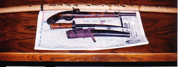 Mayu's father showed me his antiques. He has an actual samurai sword and even a pistol that have been handed down along the generations of the family. He says that the gun doesn't fire anymore, so it's harmless. But the sword was pretty darn cool. I know that during the Meiji Restoration, samurai sold their swords and weapons for money since they were basically out of a job after the bakufu fell. Perhaps that is how the family has them? I don't know. They were pretty cool though.