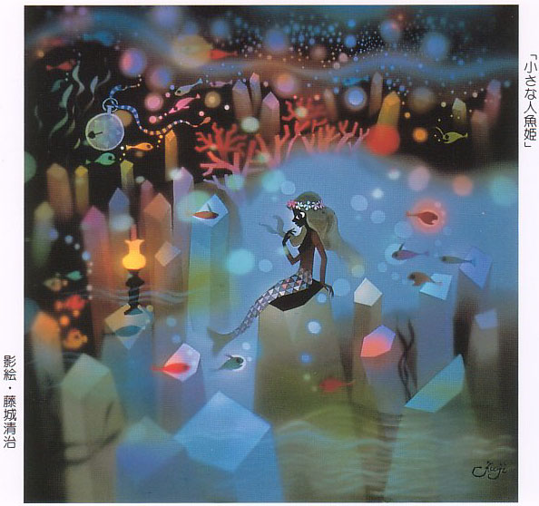 I think Fujishiro's art is representative of the distinctly Japanese artistic ability to capture a perfect blend of fantasy and cuteness that I haven't seen anywhere else. Although my wife doesn't care for traditional Japanese things (which seem boring to a Japanese girl), I enjoy ukiyo-e woodblock prints, especially the ones by Hiroshige Ando. I believe that the beauty of ukiyo-e is contained in its simplicity, and that this is why Western artists such as the French Impressionists were drawn to it and attempted to emulate it in their own artwork. I think this simplicity is carried on to Japanese popular art today. For example, if you would find a greeting card in America which features a teddy bear, it would look fuzzy and usually have a silly, gooey expression on its face. However a Japanese gretting card's teddy bear would be drawn with simple shapes with little detail, thus making it cute. Hello Kitty would be another example. She is never drawn with a mouth, and her face is expressionless. Therefore no matter what mood you're in, Hello Kitty makes people feel good.