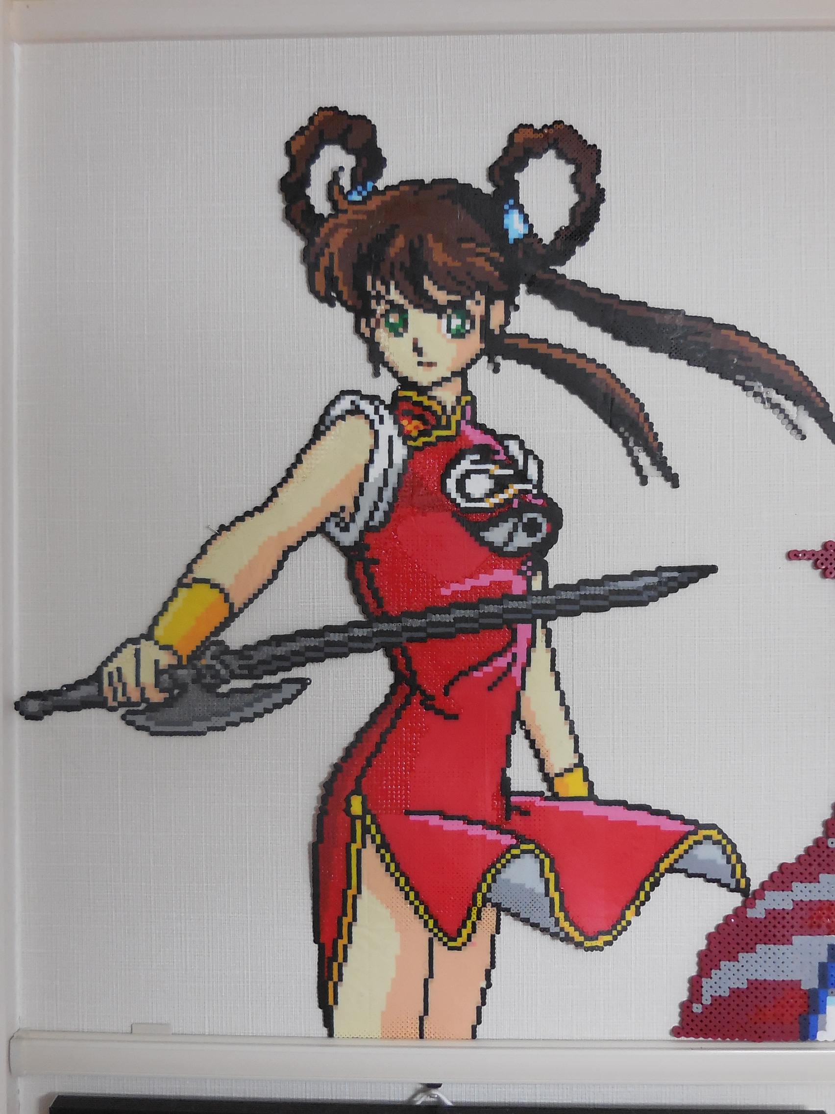 Yohko from Devil Hunter Yohko on the Megadrive. This was my first time making something with Nano Beads, which are 1/4th the size of regular Perler Beads. My first time using these tiny beads was a very HUGE project! At one point, I bumped the trays and messed up so many beads and had to redo all the work on them. Since these beads are so tiny, they can be disturbed far more easily. Yikes!