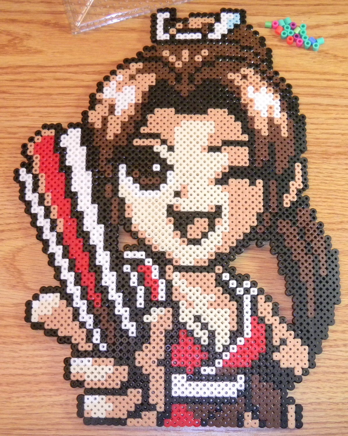 It's pretty easy, but the trick is the color matching and I happen to be color blind. I started putting together Marle from Chrono Trigger while my wife watched and my baby daughter made a mess of the beads on the floor. Most of the conversation was like: