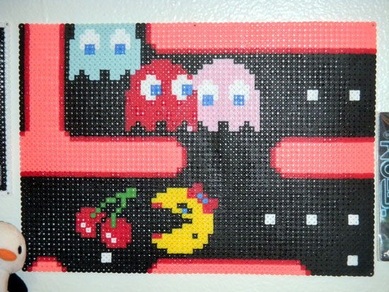 I took a screenshot of Ms. Pac Man in MAME and used the new large-size 49x69 Perler pegboard.