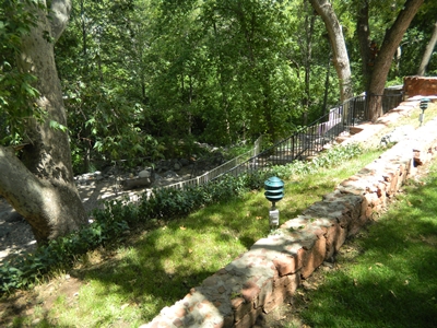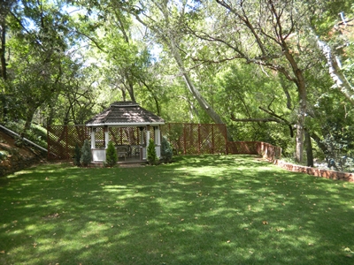 Here is the terraced area with the grassy lawn with the gazebo and the stairs leading from this level down to the creek.