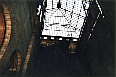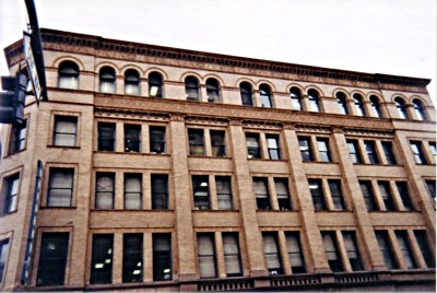 I had totally forgotten to take my camera with me, so I had to buy a lousy disposable camera to take these pictures. The interior pictures were worthless due to the lack of a flash on the camera, so here are the better pictures I was able to take. The interior is identical to what you see in the movie, although it has been completely renovated and revitalized. The iron railing remains the same. The old-style caged elevators are still there, and the beautiful glass ceiling lets natural light shine into the atrium. The tile floors are exquisite, and the statues on the first floor are beautiful.
