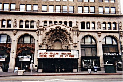 The beautiful sculpted facade of The Million Dollar Theater, across the street.