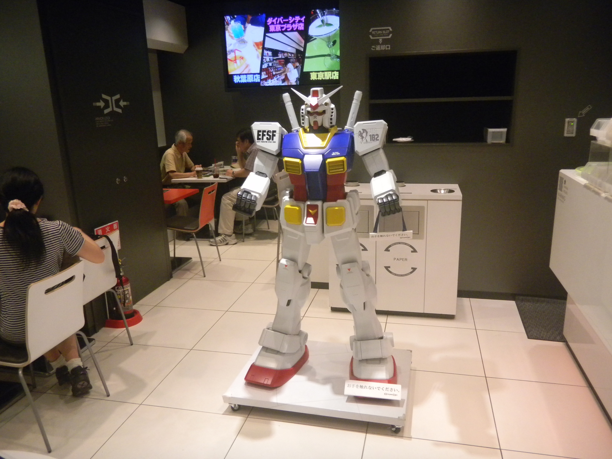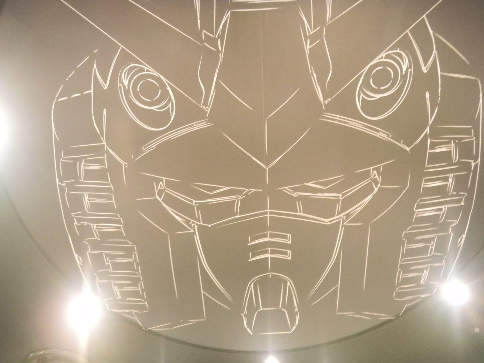 Left: This Gundam face is on the ceiling.