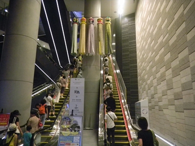 Riding the escalator up to the ground floor, we exited and looked up at the tall tower.