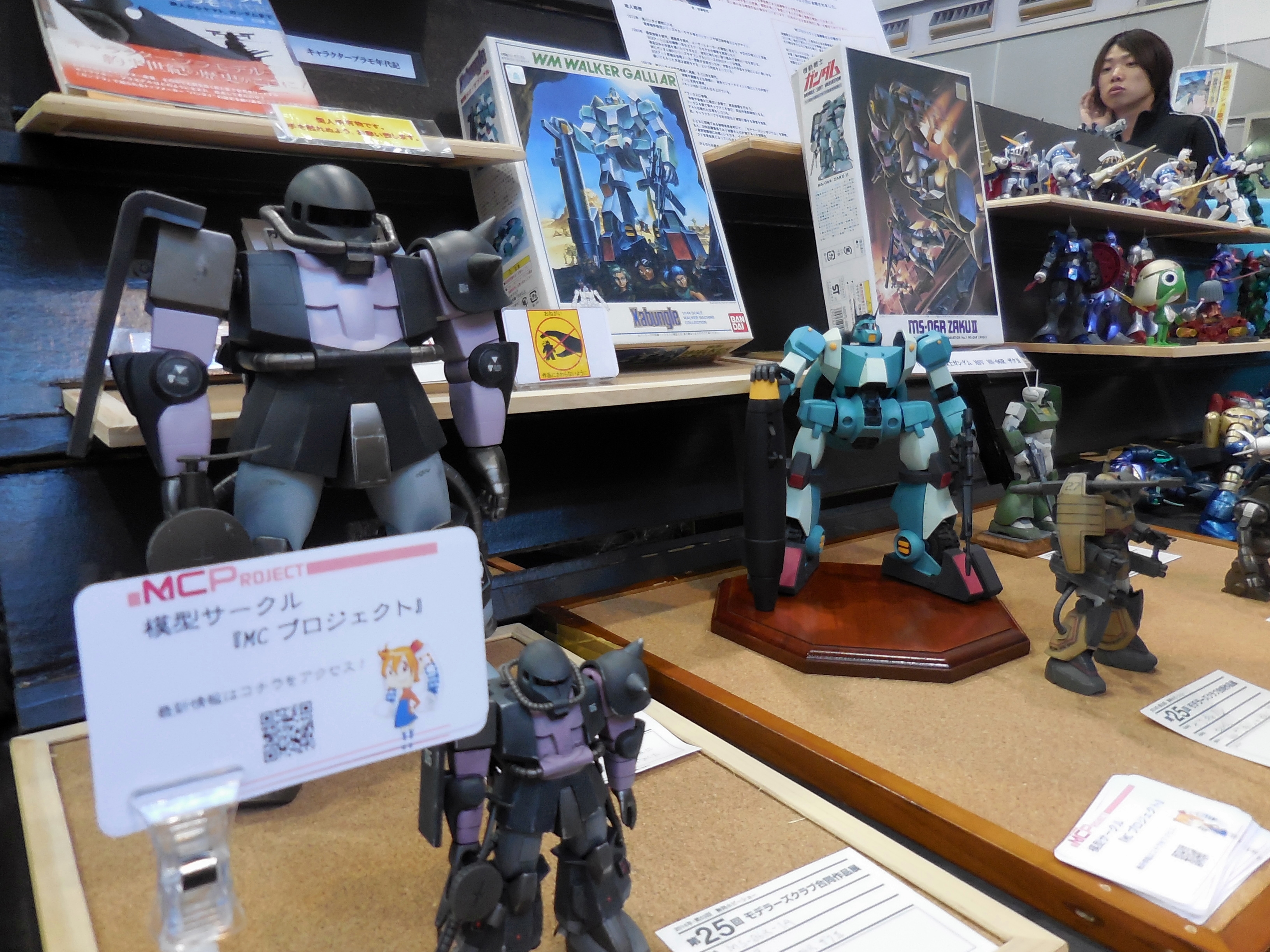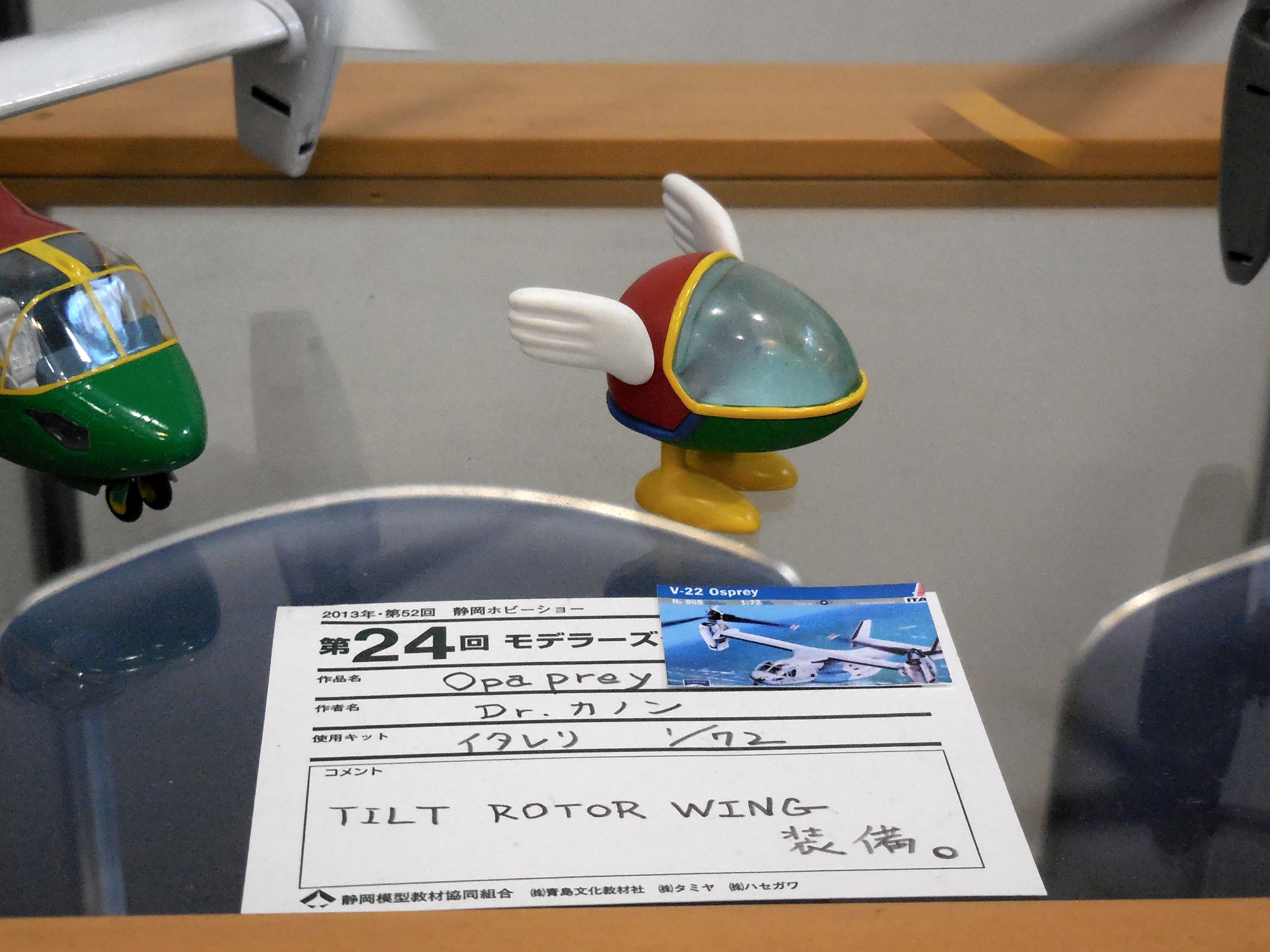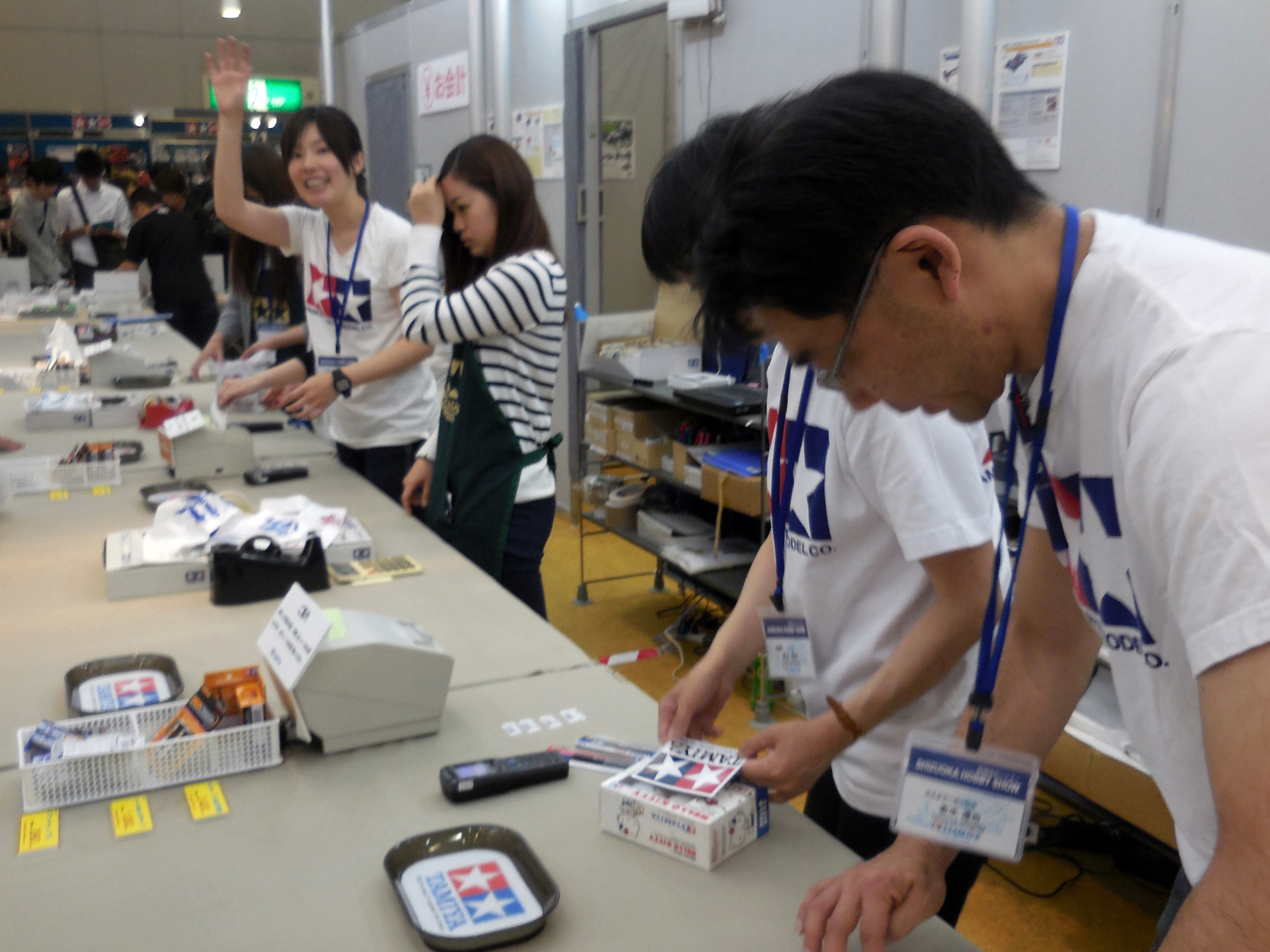 Left: Tamiya employees working the checkout counter. Right: It's Opa Opa from Fantasy Zone!