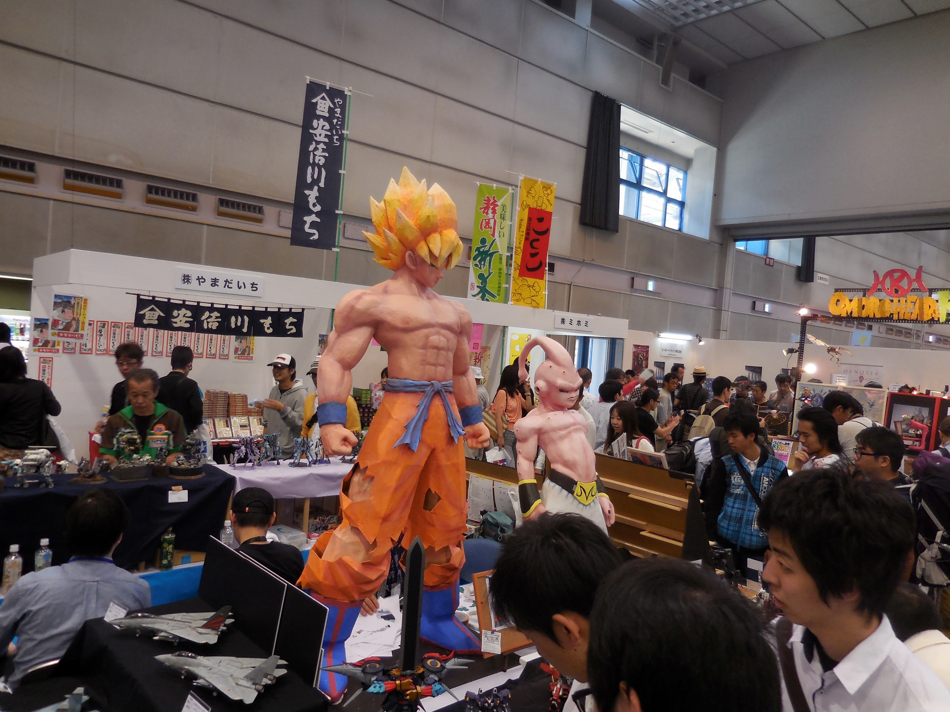 Left: There were LOTS of Yamato kits on display this year. You will see plenty of pictures like this in this gallery. Right: Big huge Dragonball Z character. I don't know who it is. I've only caught a few Dragonball Z episodes in my life, and without fail every time it featured guys with spikey hair screaming at each other in a pseudo-Chinese-ish desert, while other characters walk around in heaven with halos on their head. So you want to know why I don't care for Dragonball? That is why. It's not really my thing.