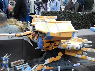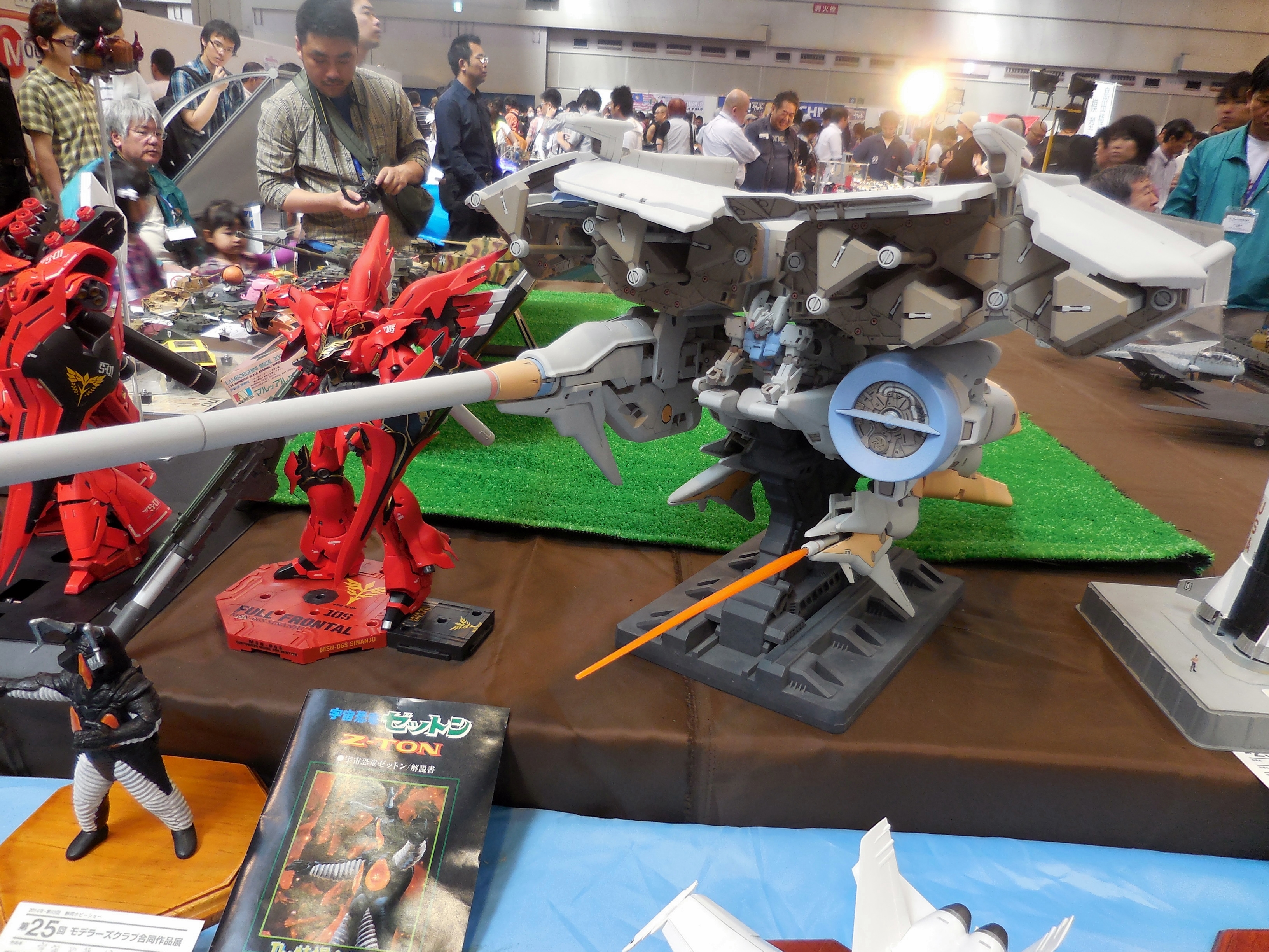 Pretty awesome Gundam stuff. The Zeong on the right is a lit model. Look for it in my YouTube video.