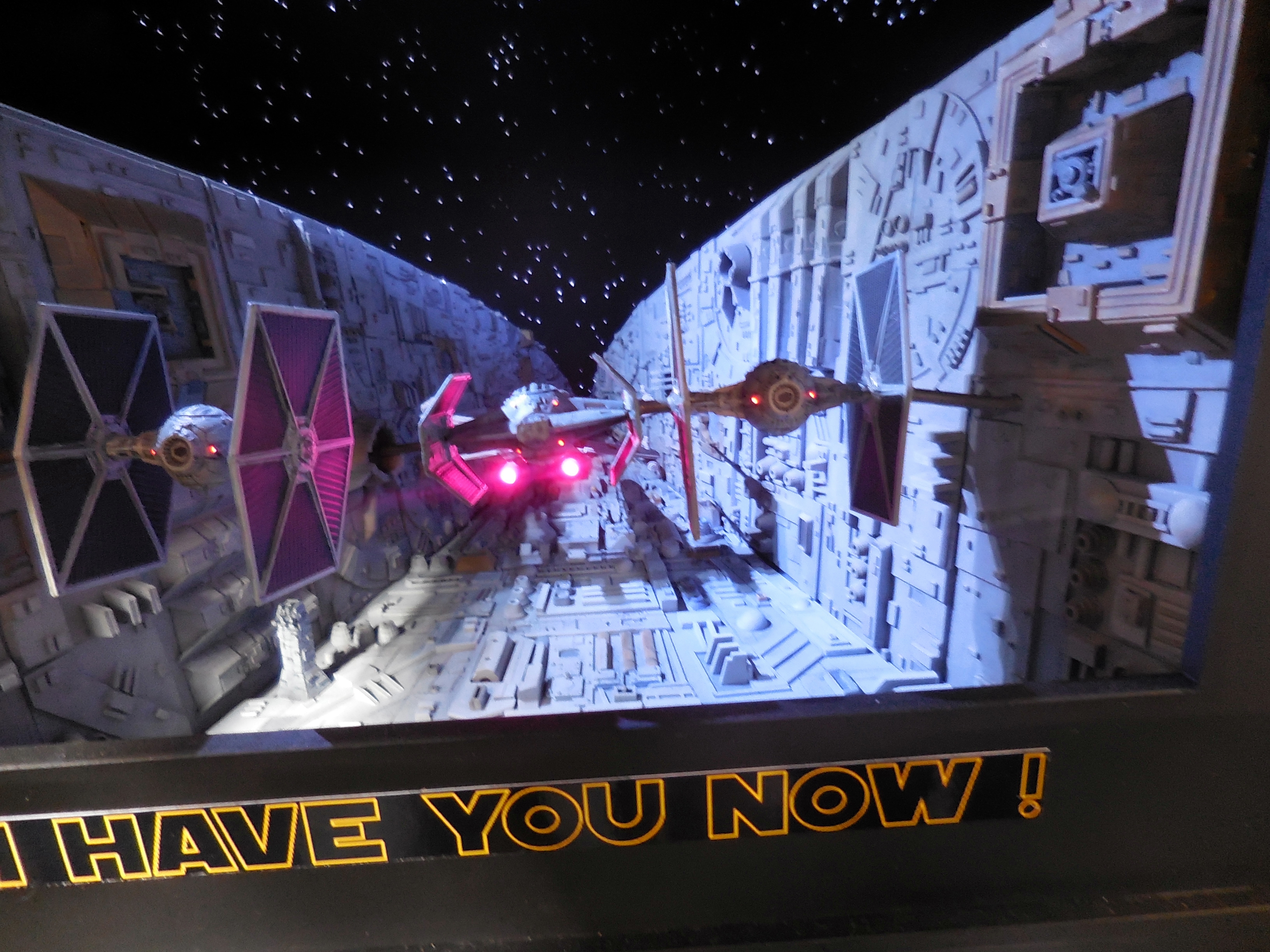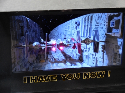 This diorama had strobing lights to simulate the trench run. See the video for a look at this.