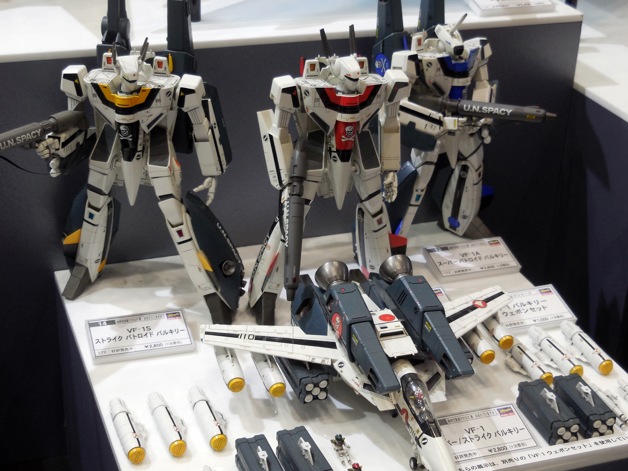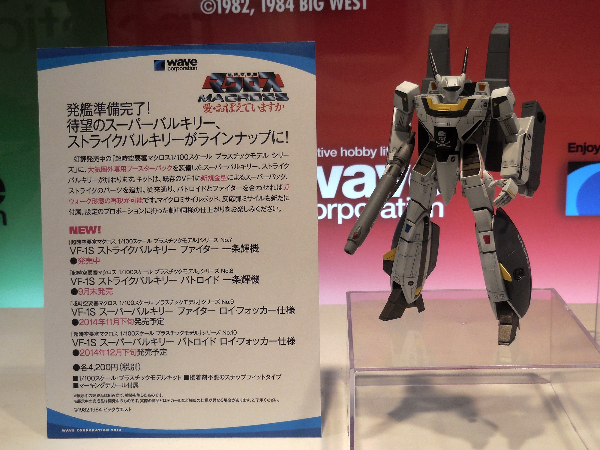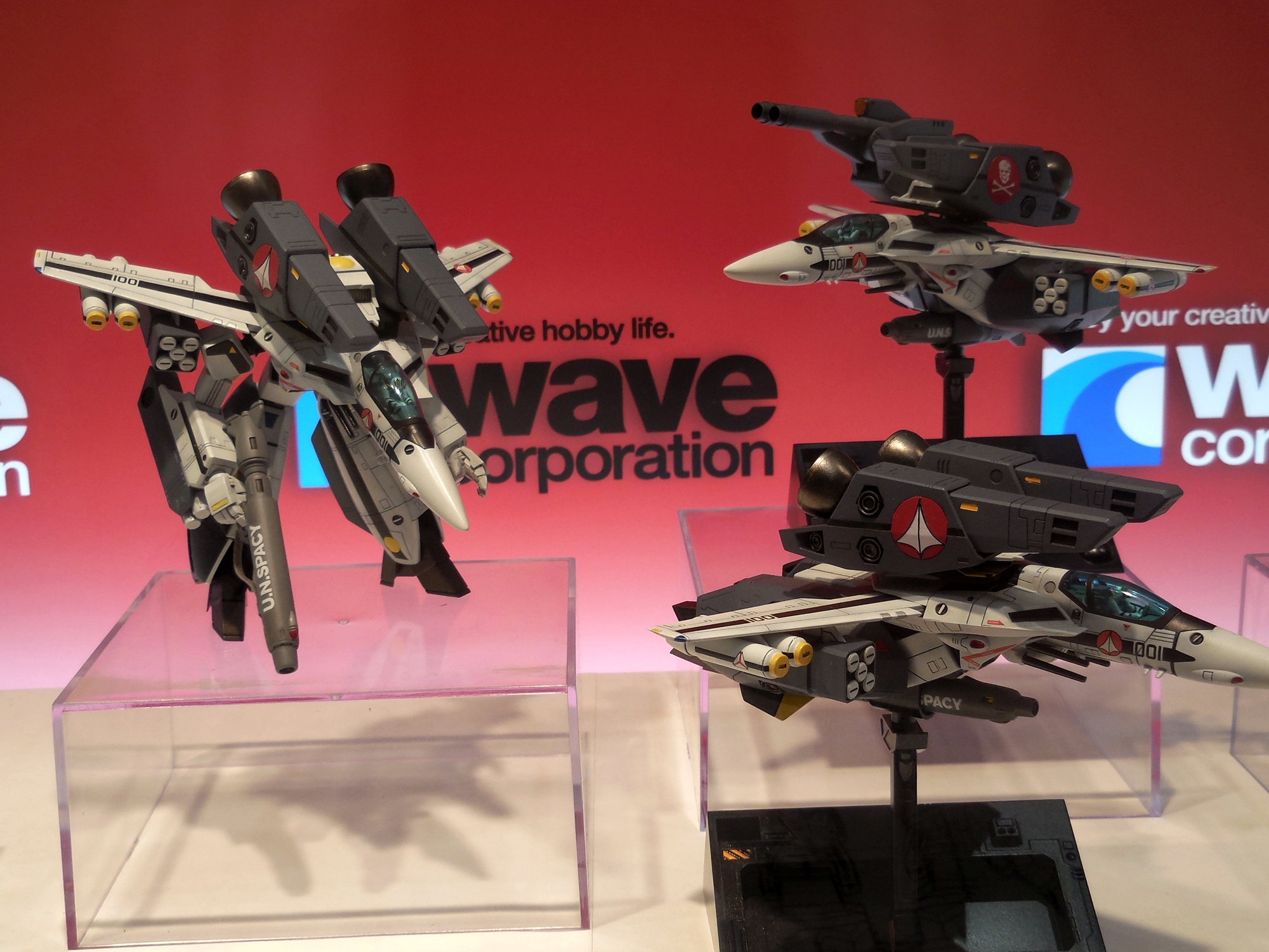 Aside from Bandai and Hasegawa, Wave also holds the license to make Macross models. Their Valkyrie line is in a 1:100 scale. Their new Super Valkyrie was on display.