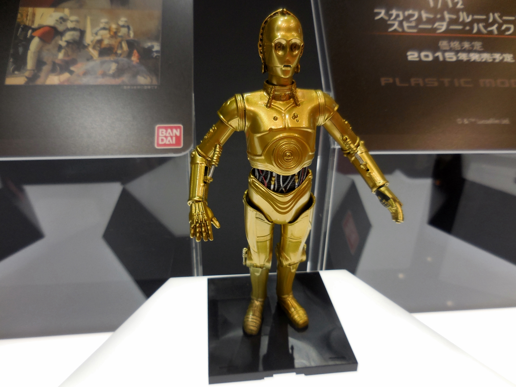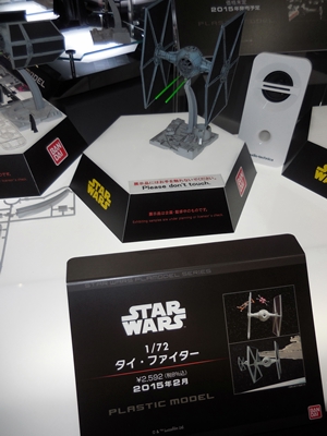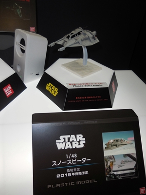 The main reason I attended this hobby show was to see firsthand the new Star Wars models on display at the Bandai booth. The big news this past summer was that the Star Wars license for Fine Molds to make Star Wars plastic models for the Japanese market has expired and that Bandai is taking over. Fine Molds certainly crafted some great Star Wars model kits with fantastic attention to detail, but they were very slow to release new kits. Now that Bandai will be making models in their fashion, for better or worse, they will be releasing new Star Wars kits at a very rapid pace. Fine Molds is a small company that does their entire model-making process in-house. Bandai, however, is a far larger company, and has the resources to make more kits and at a faster pace.