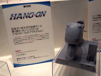 Here's an upcoming model of the Sega arcade game, Hang-On! This is just a rough sculpt of the outline of the model, but this will certainly please Sega fans. Wave has also made arcade cabinets of other arcade games, such as IDOLM@STER, Street Fighter IV, Persona 4, and Taiko no Tatsujin. Other game-related models they have produced are Namco's Xevious and Galaga starfighters.