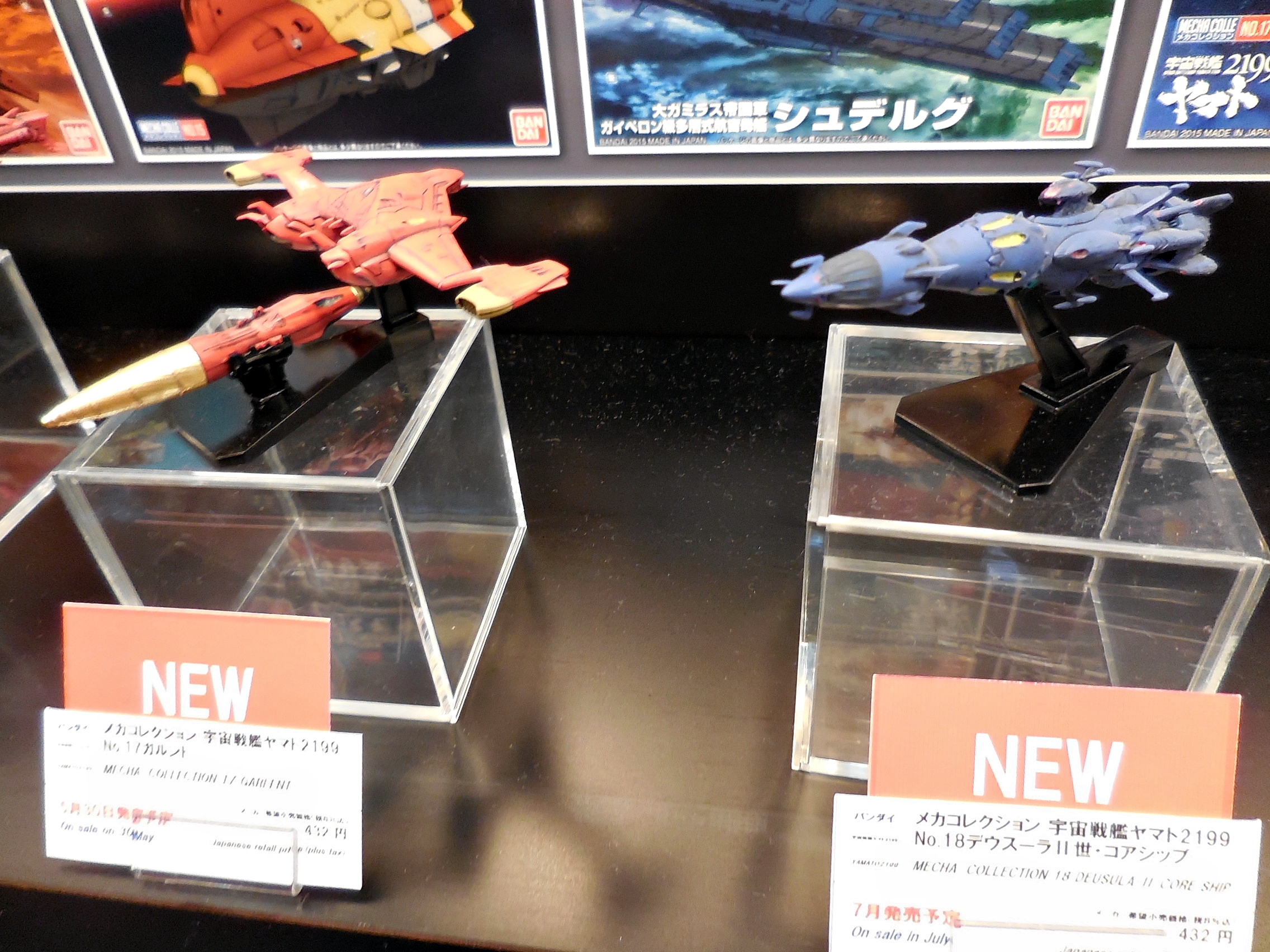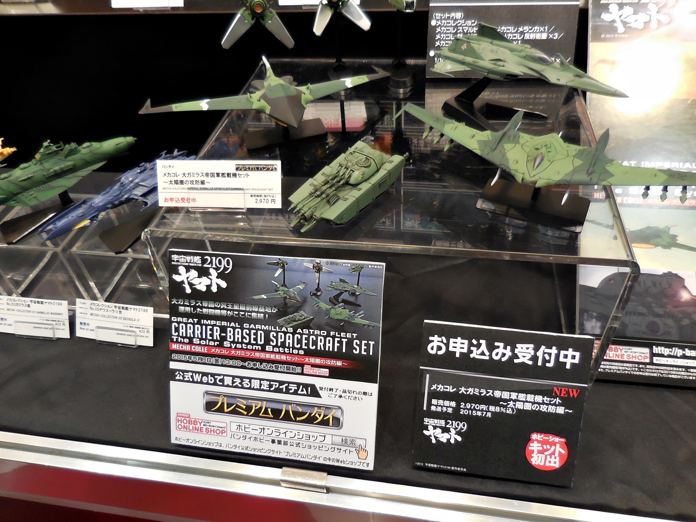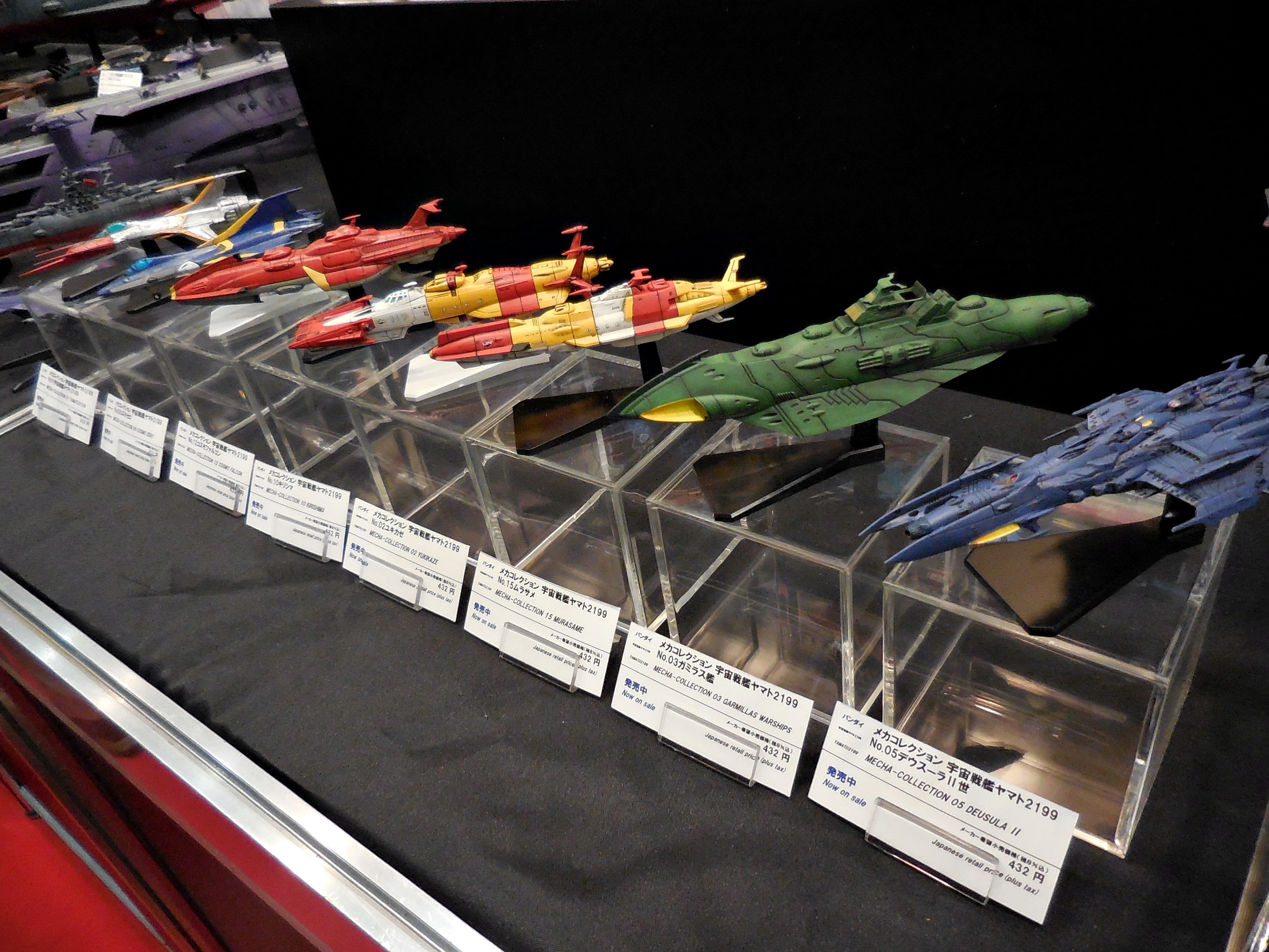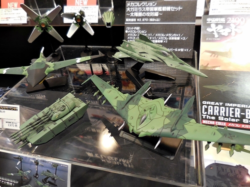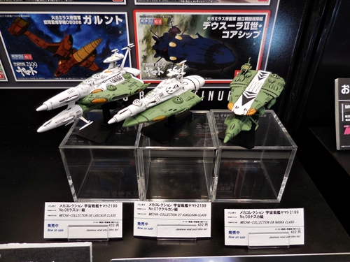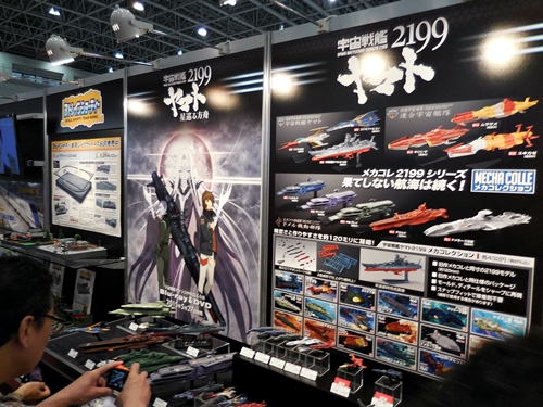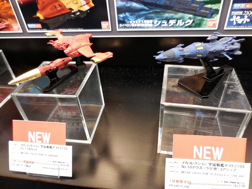 OK, so here is Bandai's Yamato 2199 display. Unfortunately, the Yamato release schedule has quieted down. I did talk with a Bandai rep about how the releases have tapered off. He said that it's gotten quiet because there will be more 2199 anime coming in the future, including the Andromeda. I took this to mean that the second series of Yamato will be remade into a 2199 version. I did beg him for a 1:72 Gamilus starfighter and a Cosmo Seagull. If anything, at least a Mekakore Seagull. He said he would take note of my request. Let's just cross our fingers.