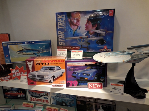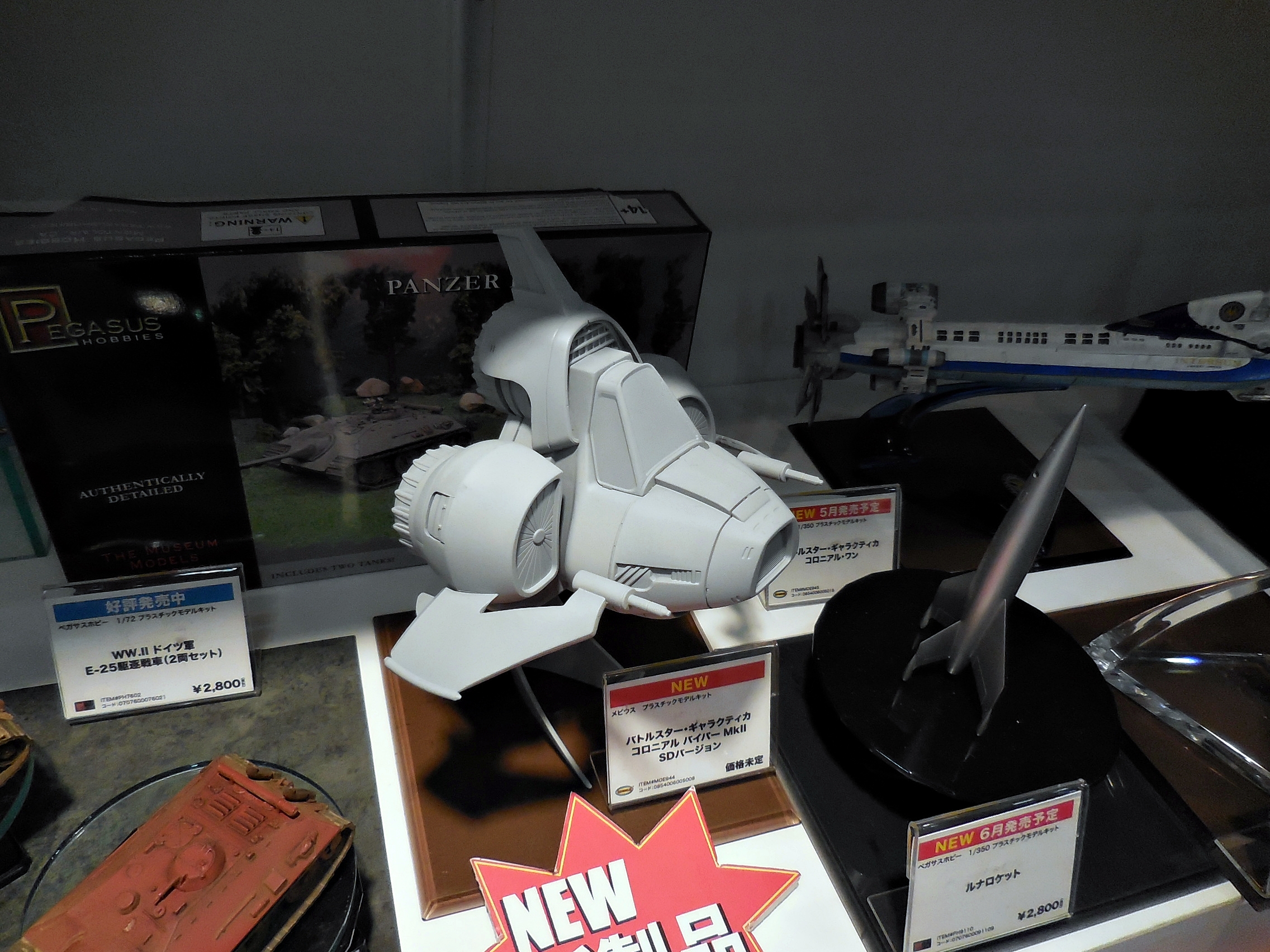 Left: I'm interested in seeing the final product of this SD Colonial Viper from Battlestar Galactica by Mobius. Right: Now we're at the Hasegawa display.