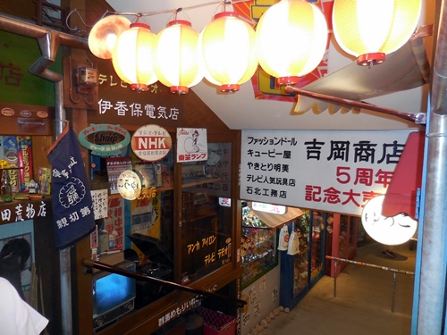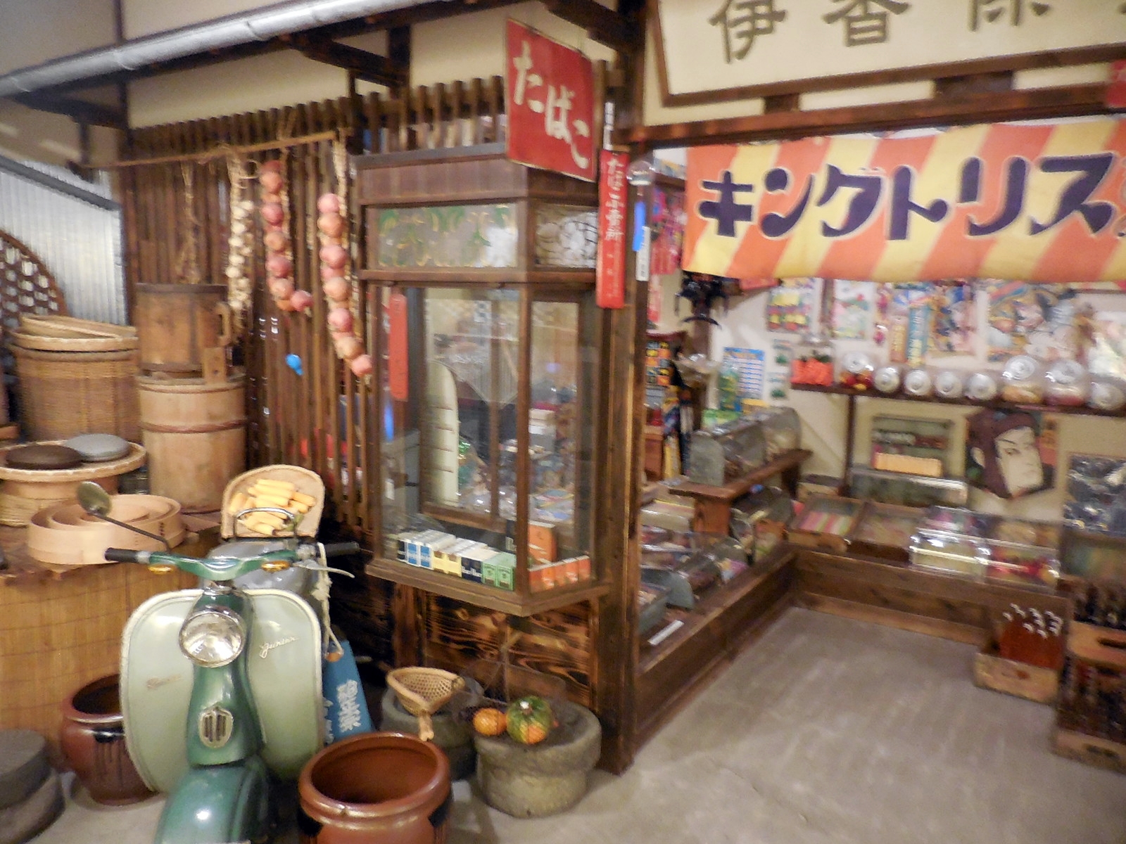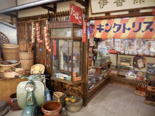 Just like the Shin-Yokohama Ramen Museum, the Ikaho Toy & Car Museum is a Showa-period retro theme park of sorts. (The Showa Period of Japan was from 1926 to 1989, the 63-year reign of Emperor Hirohito.) As with the ramen museum, the layout of much of this museum emulates the look and feel of crowded back streets of the old Showa Period era. There's a dagashi-ya (Japanese-style candy store), a retro game arcade (games pre-dating anything with video screens), and faux storefronts of a pharmacy, post office, and others.