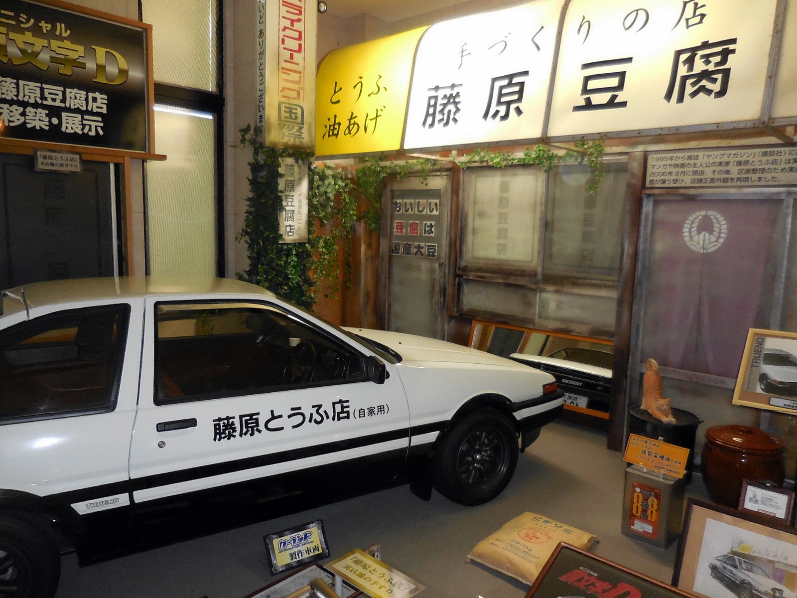 This museum features a recreation of the original Fujiwara Tofu shop that the story of the drift racing manga/anime Initial D was built around and used for the live action film, complete with a Toyota AE86 Trueno parked in front. Other cars from the series are also on display at the museum. The events of this series are based in Gunma Prefecture.