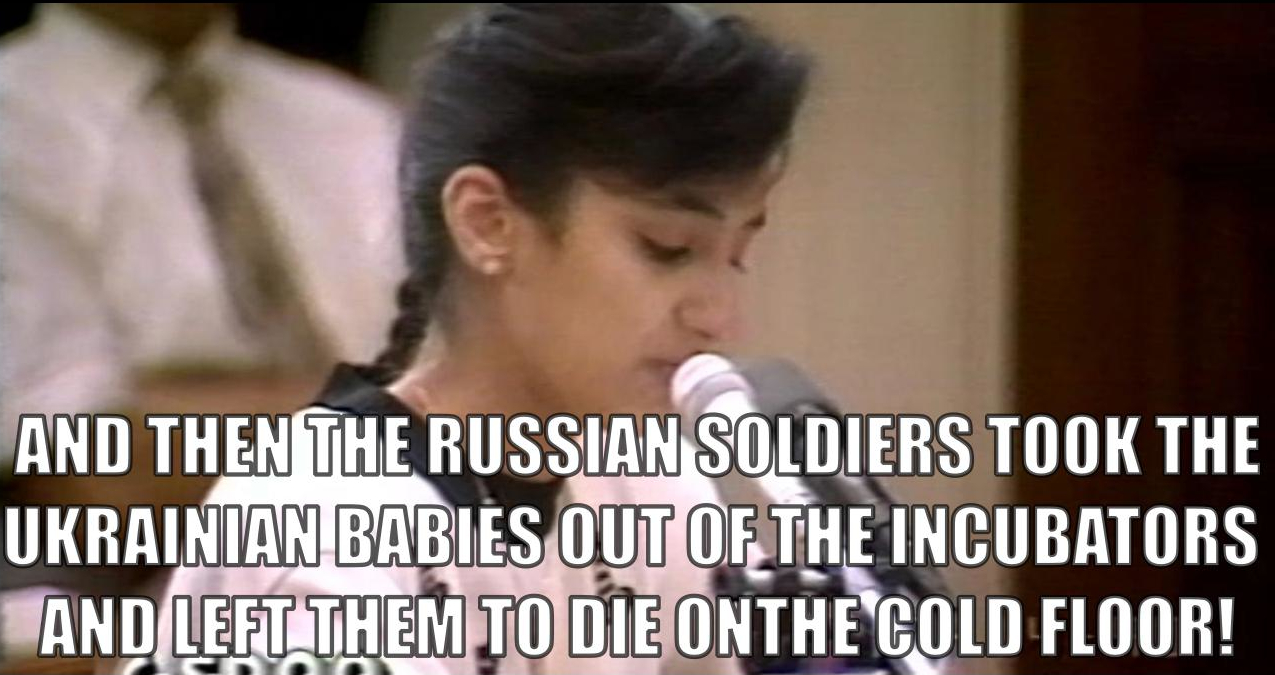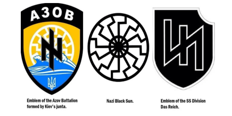 I'd like to mention the Nayirah testimony from 1990. Maybe you are familiar with it. If not, you can look it up. The meme I made above is a reference to it. A young Kuwaiti girl named Nayirah gave a testimony to the United States Congressional Human Rights Caucus, claiming that Iraqi soldiers were taking babies from incubators and leaving them to die on the cold floor. The problem is that Nayirah's full name was Nayirah Al-Sabah, who was actually the daughter of Saud Al-Sabah, the Kuwaiti ambassador to America and she did not witness any of this happening as she claimed, because she was in the USA. It was all a lie, but that fake sob story was one of the biggest factors that drove the USA to war in the Gulf. The situation in Ukraine is not as simple as you are led to believe, but people are bombarded with propaganda to incite an emotional response rather than a rational response. Unlike in 1990 though, we have the internet to connect with each other and debunk the demagoguery and fake news. The problem in the Ukraine is that the violence has been going on for years already in Ukraine, but this has been widely ignored by the West. You are correct in that Ukraine is a sovereign nation, but a George Soros-backed color revolution in 2014 ended that. Molotov-cocktail flinging mobs of thugs drove out the duly elected president out of Ukraine while waving portraits of Stepan Bandera, who was Hitler's collaborator in Ukraine. These are the ones that the Obama administration were backing to take over the Ukrainian government. During WWII, many Ukrainians welcomed the Nazis as liberators since they hated the Soviets. This Nazi ideology has gone on for generations, and they still wave swastikas to this day. The symbol of Ukraine's Azov Battalion is an amalgamation of two Nazi symbols: the Black Sun and the SS mark. You can clearly see these on their arm patches, vehicles, etc.