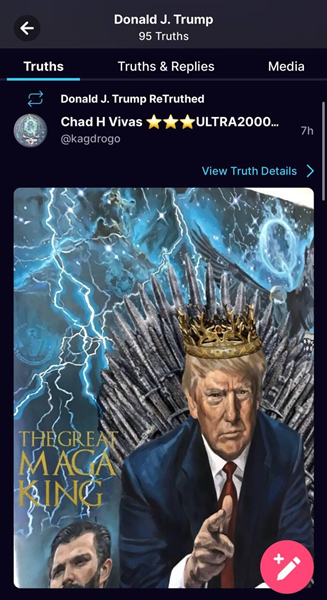 So artwork was immediately made, and someone made this artwork that, as you see at the top of this post, Trump re-truthed. I understand that it's a reference to Game Of Thrones, a show I never bothered to watch because just like Lost and other such long, drawn-out shows, the people who keep bugging me to watch such shows ended up completely disappointed with how it ended. I don't have access to Truth Social since I do not live in the USA, so all I can do is pass along screen shots and yes, Trump did re-truth the meme. Here it is.