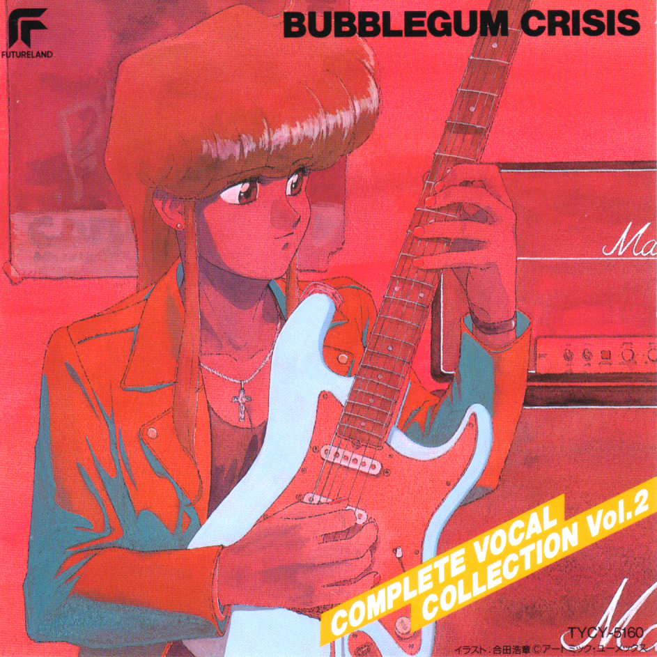 The Bubblegum Crisis Complete Vocal Collection vols. 1 & 2. These are actually not "complete" because they do not include music from the final episode 8, "Scoop Chase." There is a more complete soundtrack collection that does feature episode 8's music, but that's beyond the scope of this page since it came out several years ago.