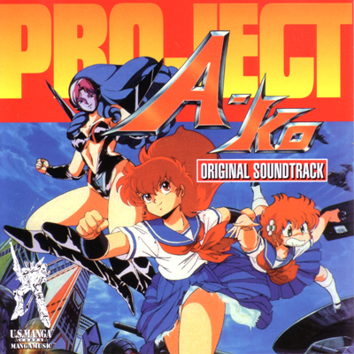 US Manga Corps even released a Project A-Ko soundtrack. The vocal music for Project A-Ko is in English anyway, so why not? At the time, anime soundtracks pressed in North America were a rarity.