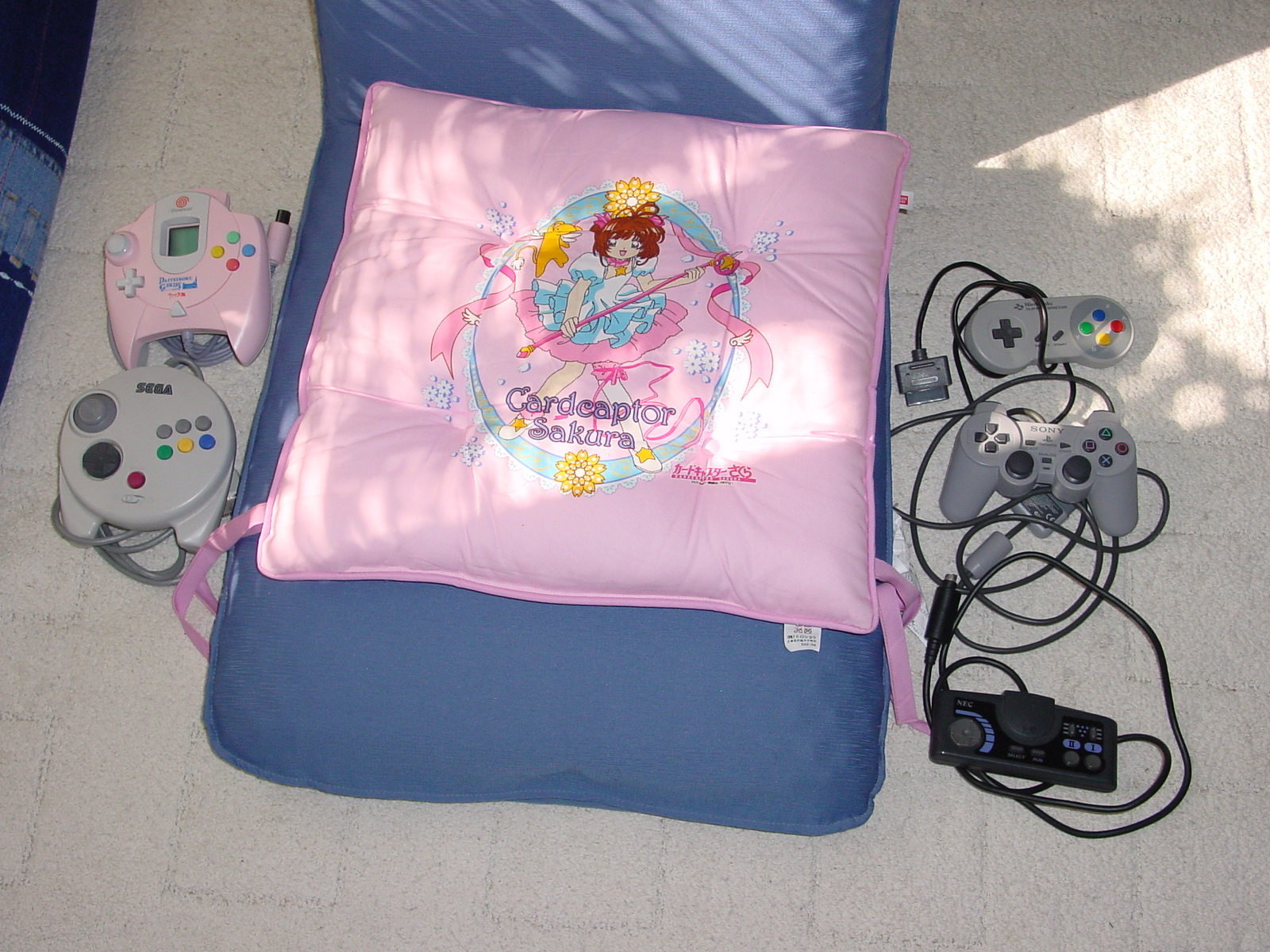 My floor chair for gaming. After we moved to Arizona in 2002, this chair stayed at the in-laws' place, and was re-introduced to our home when we moved back to Japan in 2002. But it had half broken by then, so several years ago I threw it out.