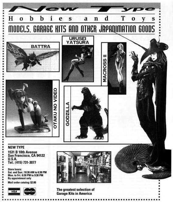 Also of interest is the advertisement for New Type Hobbies and Toys on page 7, where I bought my first Macross Valkyrie model from. I used to just flip through New Type's catalog over and over again, thinking that I would love to someday build garage kits of Bubblegum Crisis and the like, but at the time I figured that I would never gain the skills to do so. Oh what a difference 30 years of my life would make!