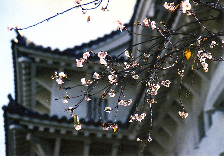 Mayu and her mother came to visit me in Himeji in November 2000, four months before our wedding. They first visited Kyoto together before coming to visit me in Himeji. There was a cold front before then, and then it became warm. It confused the trees enough to cause the cherry trees to begin to bloom in November! The term akizakura commonly refers to cosmos flowers, but in this case it can also refer to cherry blossoms that bloom in the fall.