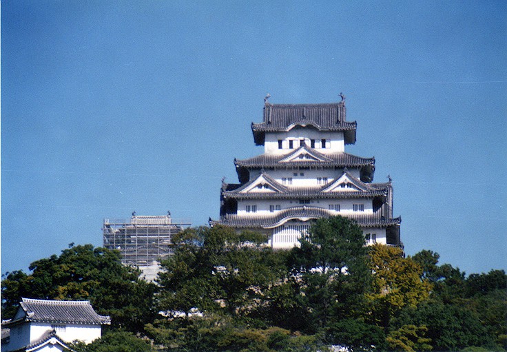 Nicknamed Shirasagi ("White Heron") Castle, the origins of the majestic Himeji Castle date back to the year 1333. It's right in the middle of Himeji City, and the wide boulevard starting from Himeji Station heads north to where the castle is. There is an inner moat and a sort of outer moat as well. The castle is surrounded by cherry trees and large grassy areas, making it a prime spot for cherry blossom viewing parties in spring. There is a large park in the back of the castle, to the north. I have fond memories of playing frisbee with Mayu and my friend Mike there.