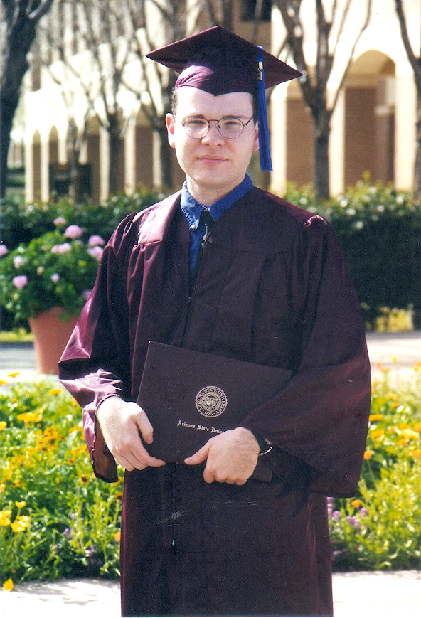 My first semester at ASU West was fall of '97. I had one more class to take at Glendale Community College (GCC), and it was ACC212, Managerial Accounting. I hated accounting, but I managed to get a B for that class. It was just one last pre-requisite the class scheduling advisor discovered that I needed to take. It was nice because although I only had one class left to take at GCC, I still got to see my friends Kevin, Lisa, and Bic. A year or so after, Bic and later Kevin attended ASU West, and Kevin also got the same degree as I did. So for that semester, the plan was to take that Accounting class at GCC, a Japanese 116 class at Phoenix College, and a semester of classes at ASU West. I was going to be bouncing between three college campuses. The thing is, the Japanese class was cancelled and I wasn't even notified by mail by the college. They didn't even notify the teacher! So to prevent from becoming a part-time student and losing my parents' health insurance status, I signed up for a Japanese history class at ASU West on Thursday nights. That meant that my usual Thursday night of Therapy Night with my friends Richard and Steve at the Coffee Plantation downtown went goodbye.