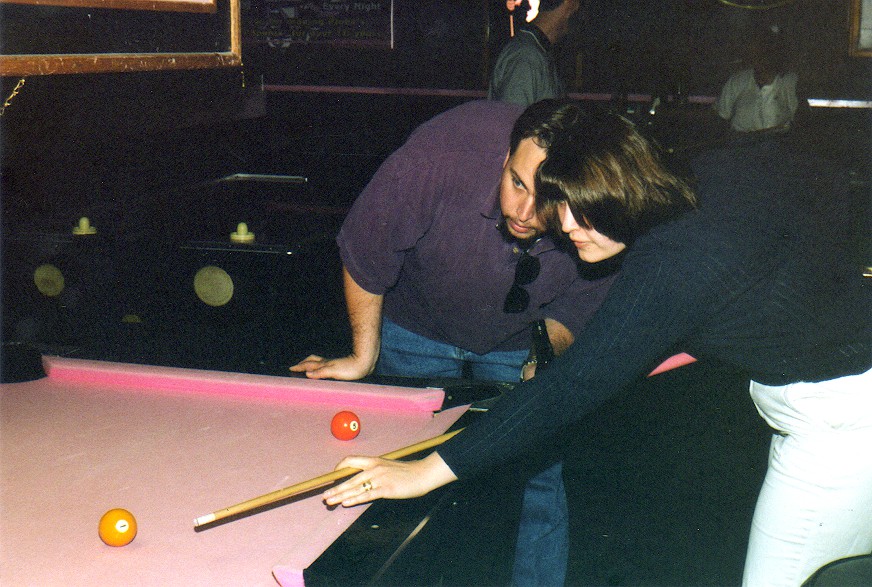On Friday, March 10th, I had dinner with Han and Lorenzo from work at Takamatsu, a Korean/Japanese restaurant with great Korean BBQ and sushi. Han was from Korea and we had a great time. We had bibimbap and Han told Lorenzo and I a lot about Korean food. Plus the sushi there was pretty great. I'd been there a few times with Bobby, too. The next night was Saturday, March 11th. There was a billiards bar called Six Shooters that I'd been to several times with friends from church and such. It was all-ages place up until a certain time of night, and after then we'd get carded. So I shot pool with my coworkers there and had a great time. There was free refills on iced tea, so that's what I was drinking. Bobby was always trying to get me drunk, so he offered to buy me an alcoholic drink. I asked him to get me a Long Island iced tea, since I'd had those before and it was the type of booze I liked at the time (something a little sweet). After that, he offered to buy me a second Long Island, so hey, why not? Well, that may have been a mistake, but I didn't realize it at the time. Later in the karaoke room, Bobby sang Credence Clearwater Revival's "Have You Ever Seen the Rain" and was a total cornball about it, totally hamming it up. His girlfriend kept shouting, "YOU SUCK!" at him and it was hilarious. Bobby would respond to her and say, "Dude, I shred!" I laughed the whole time. At the end of the night, Bobby asked me if I needed a ride home. I was like, "It's alright. I've just had a few Long Islands. I feel fine." "Are you sure?" "Yeah, totally. Don't worry about it." I drove my dad's truck that night since my Cutlass Supreme car had died a fiery death a few months prior, after I had graduated. Fortunately, I got home just fine. I came in and Dad was watching some stupid movie like Earth Girls are Easy or some crap like that on the USA Network. I sat down on the sofa next to him and suddenly that was when it hit me. My head suddenly felt so heavy and the room started spinning. I wasn't aware of it, but I had driven home drunk without even knowing I was drunk until I got home. It didn't hit me until I got home. I thought that Long Islands were actually sweetened iced teas with just a squirt of whiskey, but Dad told me that they are made of gin, rum, vodka and such with a splash of cola for coloring and a sweet taste. Oh my. So that is why Bobby was so concerned about me. He had his girlfriend to drive him home and had offered to have her drive me too. From that night on, I made sure to be more careful.
