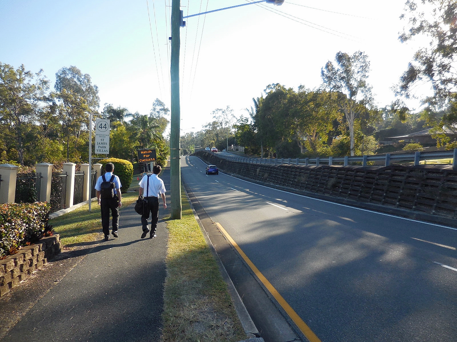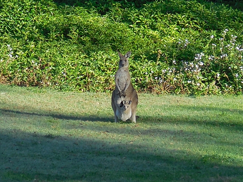It was the first week of August, so we went from the hot part of summer to a rather mild part of Australia's winter. A jumper was necessary in the cool mornings, but by the afternoon, short sleeves were adequate and I wish that I had packed those instead of the long sleeve shirts I had brought. We flew overnight Sunday and arrived in the very early hours Monday morning, and we were taken directly to the school. Going from summer to winter, our bodies were telling us that it was colder than it really was. I won't go into much detail about the school activities and such, but during that first morning we were all startled and excited to hear a laughing kookaburra bird's call from the trees across the street. It's something I'd only ever heard in movies, come to think of it. Pretty wild and exotic.
