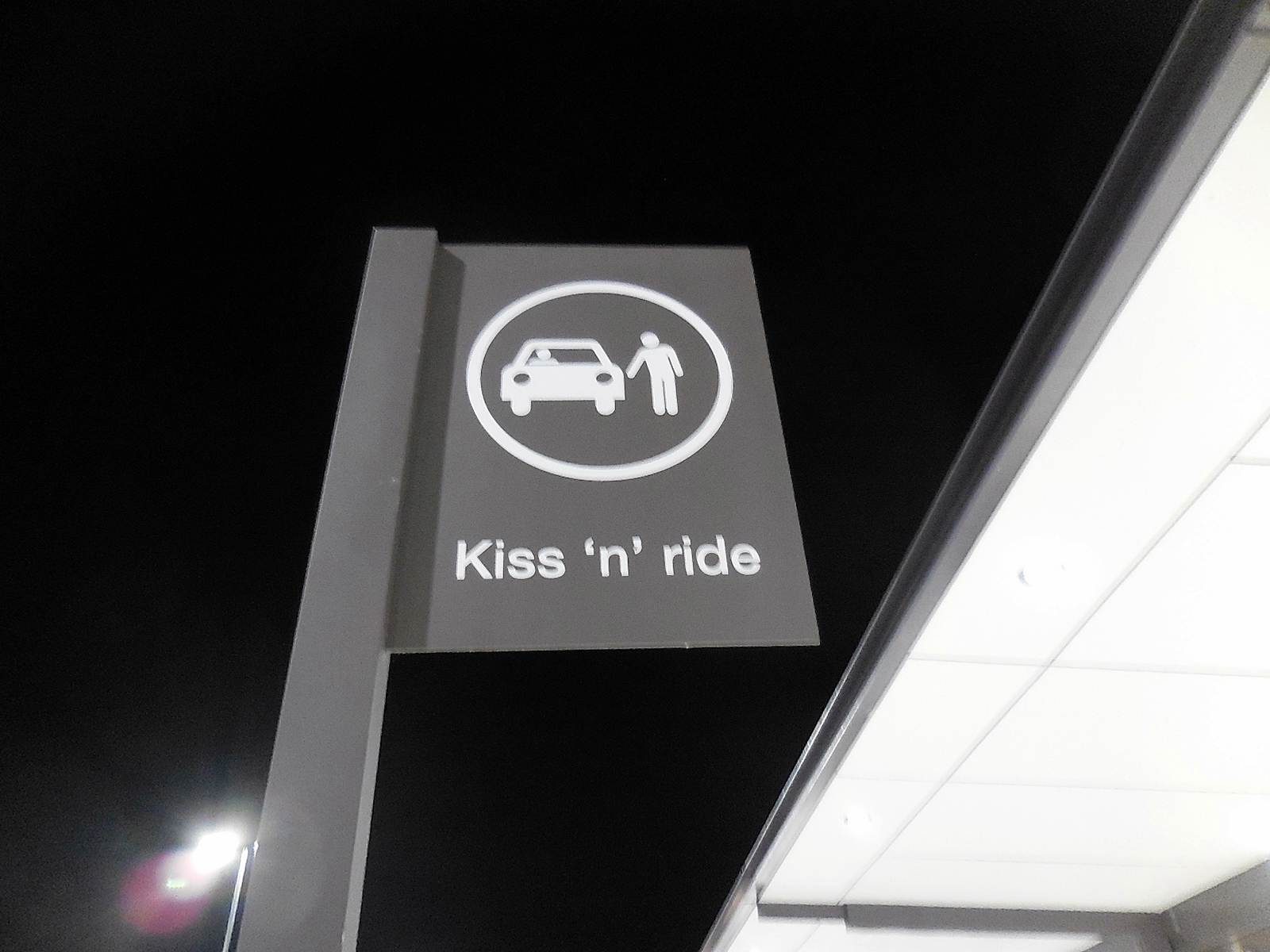 Left: I took this picture by mistake, but it looks cool. Right: I had to have my Australian friend explain to me what "kiss & ride" means. It's a place to drop people off and pick them up so as not to interfere with the buses and taxis.