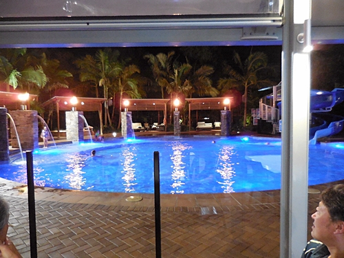 Here is that motel/RV park we stayed at. The heated pool looks rather beautiful, lighted up at night like that. There is a cafe there, and I ate a fantastic hamburger there.
