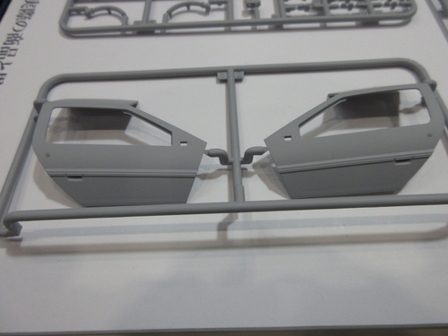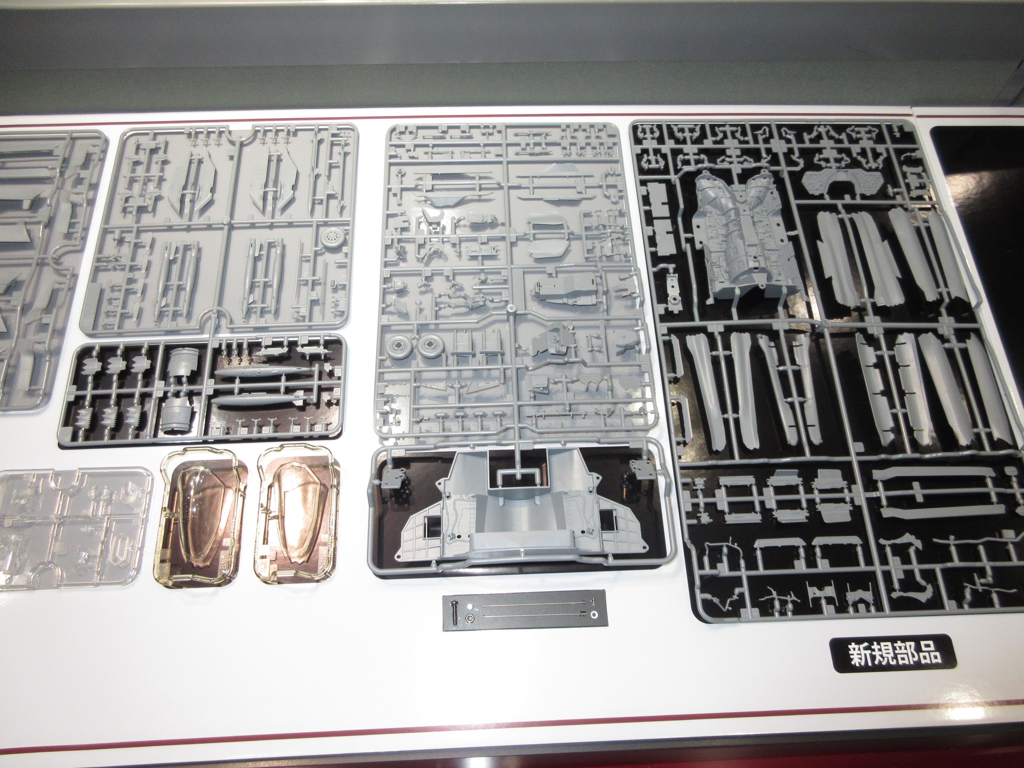 I missed this news from the Shizuoka Hobby Sow in May, so I was pleasantly surprised to see a completely new Delorean kit. No longer are the wires molded onto the car, but are individual pieces which can be painted separately. All of the time machine parts on the back deck are individual too. Not only that, but the gull-wing doors can be positioned open or closed via pins! The pins are plastic and not metal though, so I am not sure how sturdy they are. I talked with Unno-san a bit about the model as he was the one who designed it.