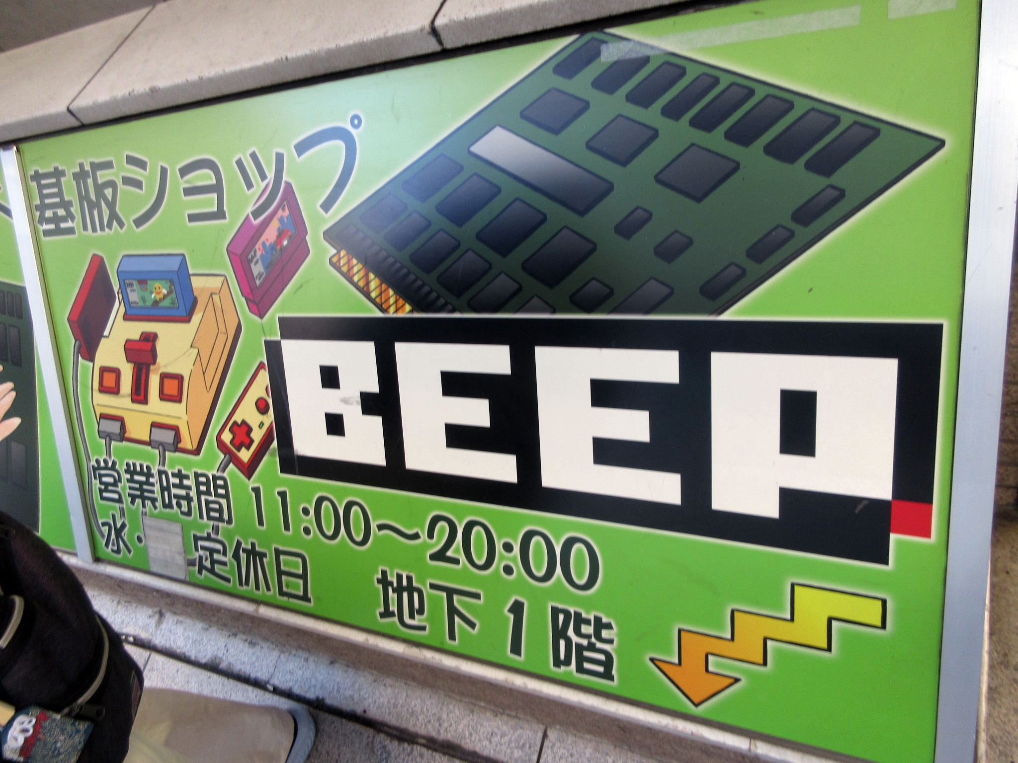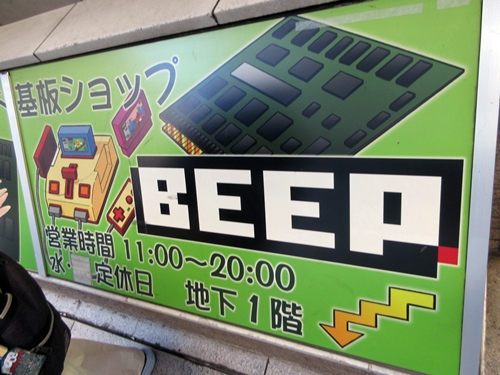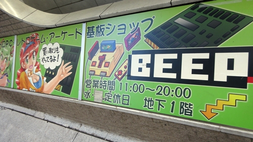 I think I must have ordered something from Beep's online store a long time ago for my friend, because I'm on their mailing list. It's hard to believe that new game software is still being released for old retro computers like the Sharp X68000, but Beep is at the heart of that scene. I must have walked past the store accidentally twice before I found it at last. It's in the basement of a building, and the signage is not where I expected it to be. I had my camera, so I took pictures. The signs in the store say that photography is allowed, but taking videos is not.