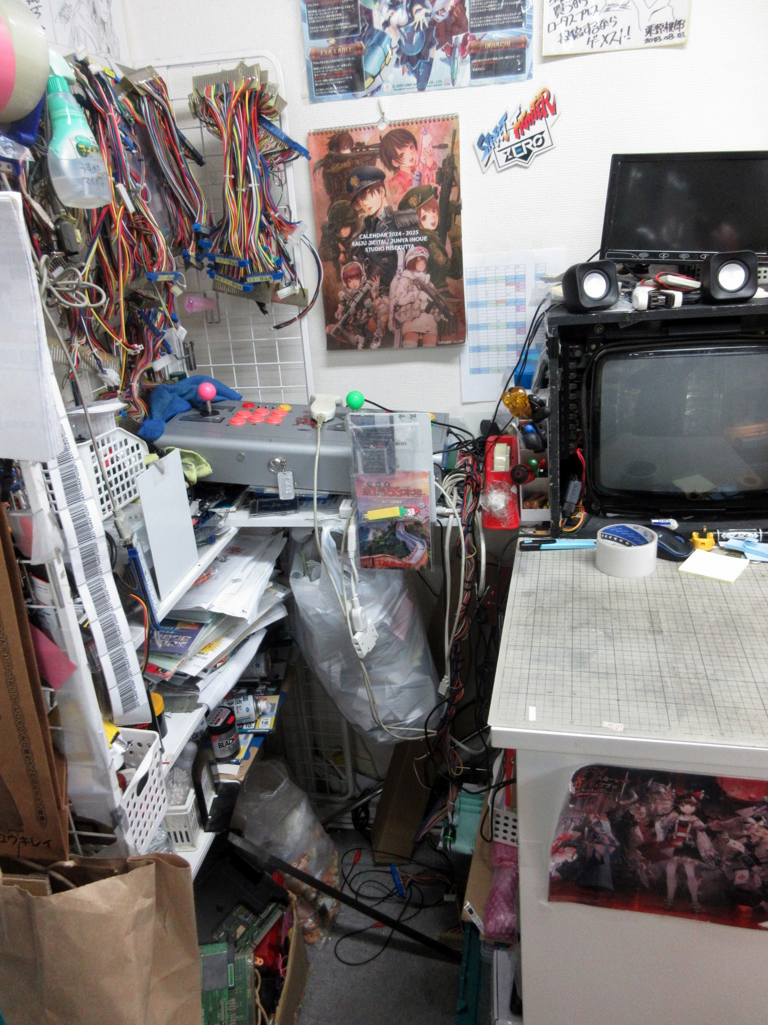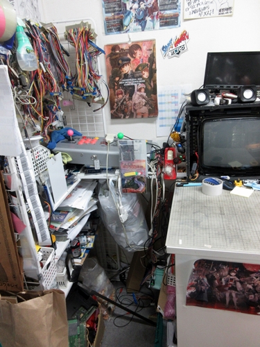 Left: here's a workstation in the corner for fixing stuff. Right: a Salamander III poster, not for sale. There were so many posters there.