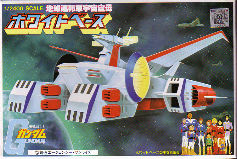 I was in the midst of airbrushing a Patlabor Ingram model, a ZZ Gundam model, and a Voltron model when my cheap crap airbrush broke. I had to put those projects aside and decided to try hand-painting a model. I found this small White Base model at a pastic model hobby store I'd never been to. It was a small shop with a large Tamiya poster in the window, so I decided to check it out. Not much at all in terms of sci-fi models, but there on the table was a collection some customer had sold to the owner. This small White Base model was on the top of the pile and only cost me a few dollars.