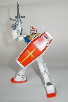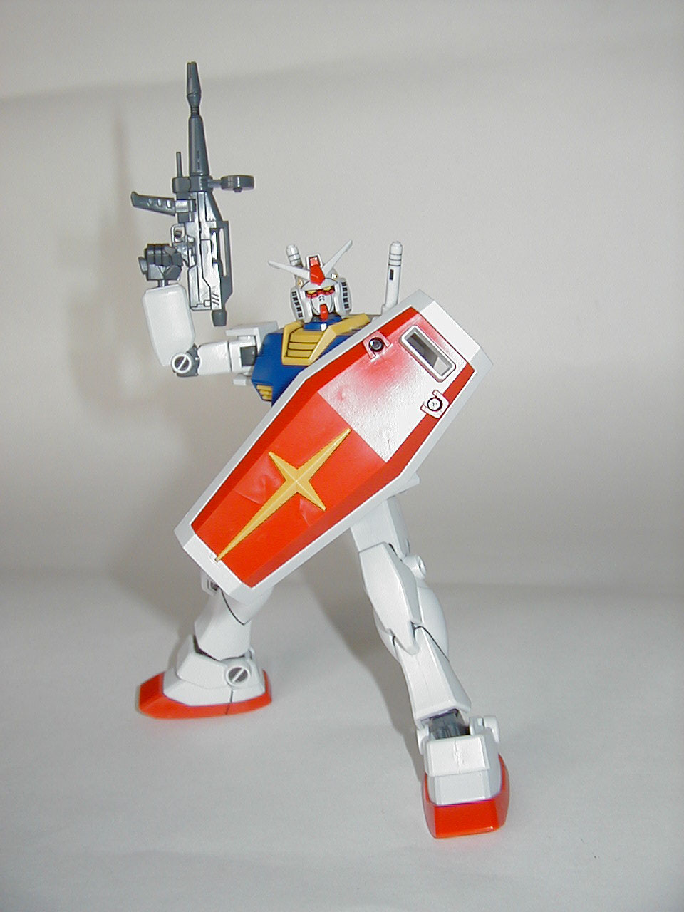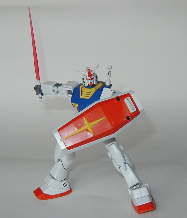 As you can see from the pics, this is a very fun and very poseable Gundam model. Most Gunpla can be rather stiff, but I am very impressed with the poseability of this one. I'd say that it's on par with an action figure, and it is very sturdy, unlike my Zeta Gundam model. This Gundam can hold the beam rifle with both hands as well as holding the beam saber with both hands. I wish all Gunpla were this solid