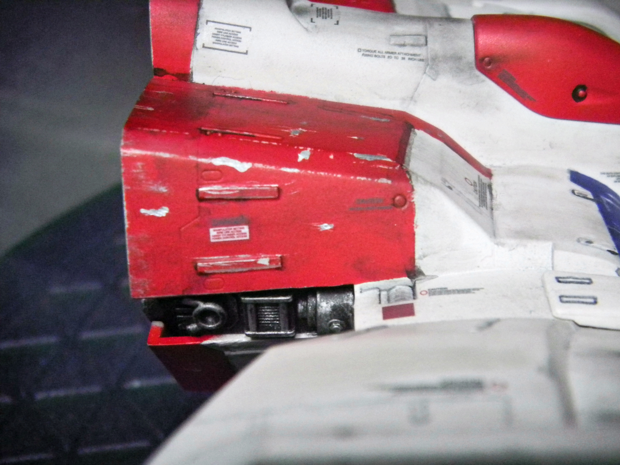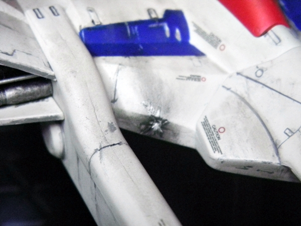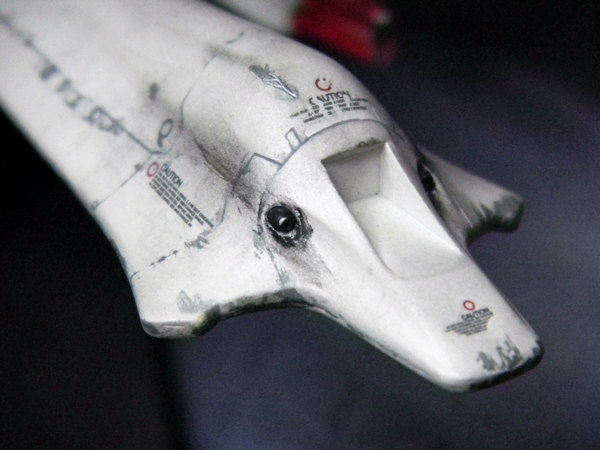 I used the Nouvel Carre pastel chalks to really dirty up this ship. I carved some blast points into the surface of the model before painting, I dotted those with Testors silver enamel before the matte clear coat, and then applied the chalk. The color of chalk I used for rust didn't really stand out when applied, until I got it wet. (I actually didn't use water because I didn't feel like getting up. I admit that I just used a bit of spit. :D ) You won't see that in the video though. I'd feel silly showing that in the video of the build.