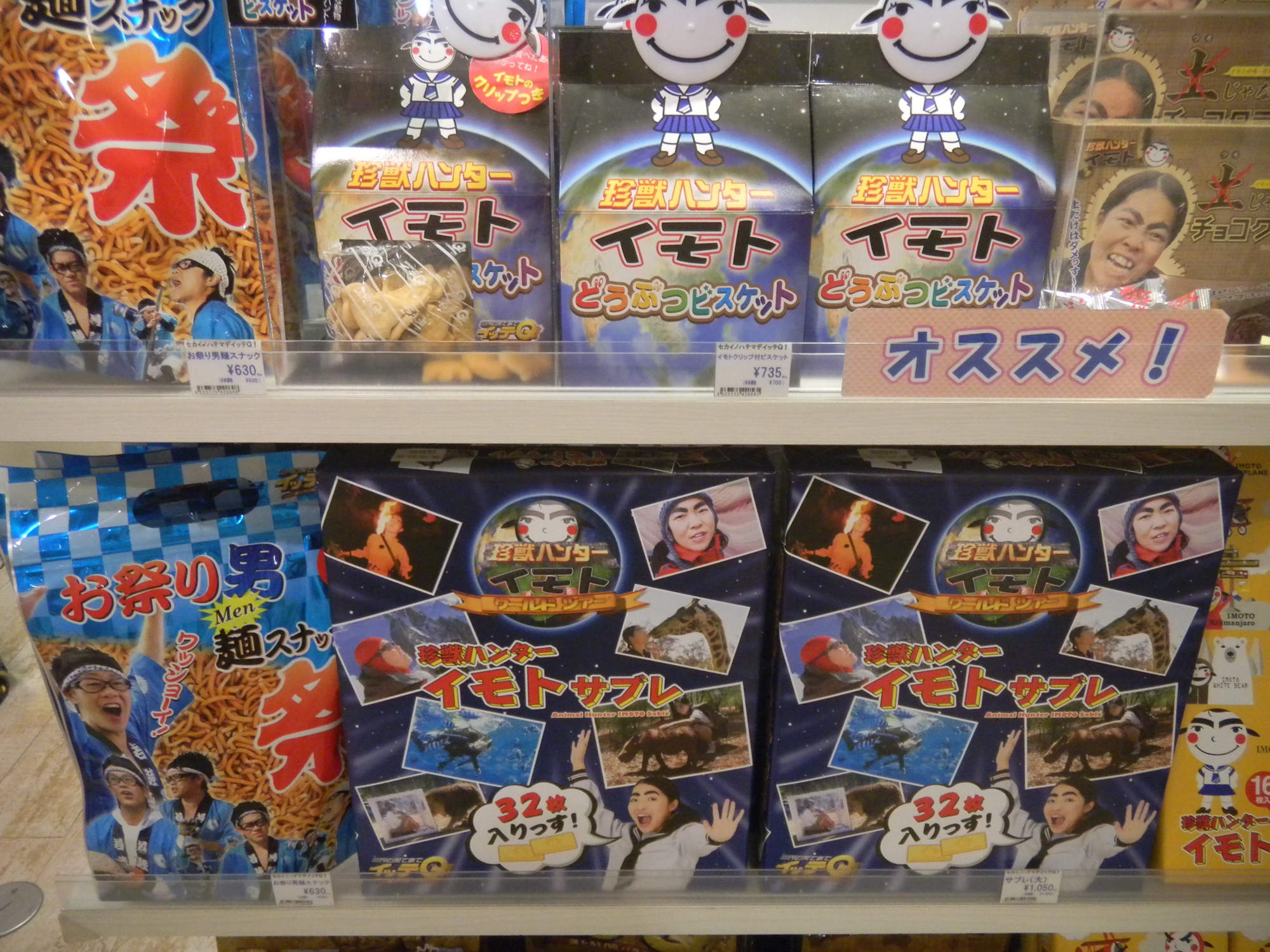 Left: My daughter likes Precure. Right: Imoto is a goofy character on Japanese TV who goes around doing stuff and acting silly. Fake eyebrows = funny in Japan, I guess. The character somewhat reminds me of that Saturday Night Live girl character who would do the splits and smell her armpits. You know what I'm talking about? It was after SNL stopped being funny.