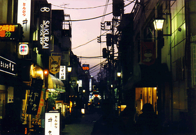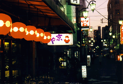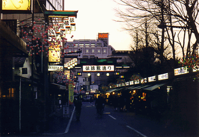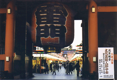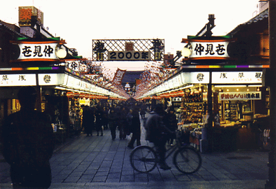 Late that afternoon, I visited Asakusa. It was decorated for the celebration of the New Year 2000. The winter sun was starting to set, and all the shops of the Nakamise were lit up. It was so pretty. I wandered around the Asakusa area and took a lot of photographs as the sun set on the city.