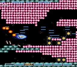 As great of a game as this may be, Gradius III for the Super Famicom is plagued with lots of slowdown. Which is unfortunate, because this is the game's major drawback. As Konami's developers became more familiar with the Super Famicom's hardware, Konami shooters released later on in the console's lifespan did not suffer from such slowdown.